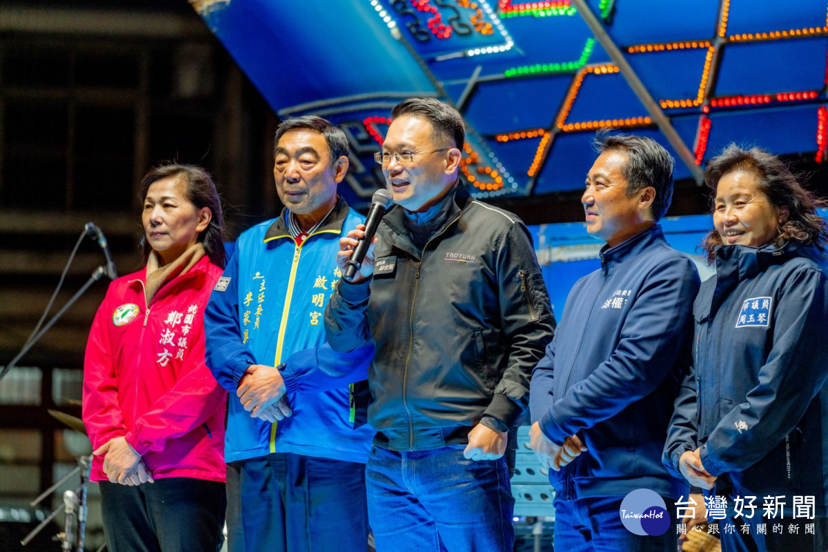 記者葉志成 /桃園報導蘇副市長致詞。桃園市副市長蘇俊賓14日晚間前往楊梅區,出席「啟明宮慶祝財神殿安座聯歡晚會」。蘇俊賓表示,啟明宮自清光緒二十五年(1899年)創建至今,長年深耕楊梅地方,不僅持續關懷弱勢族群,也大力投入教育資源,市府每年都能感受到廟方滿滿的用心與付出。今日財