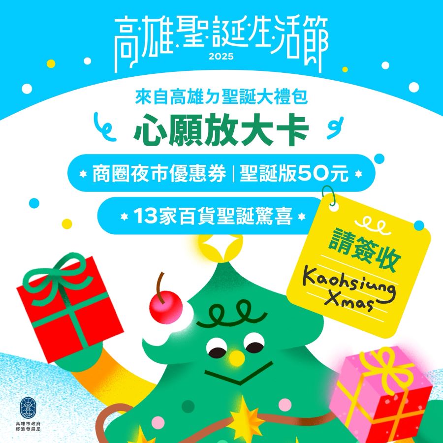 - 台灣好報高雄聖誕生活節推出「心願放大卡」雙重回饋50元商圈夜市券及全市百貨聖誕驚喜【記者 王雯玲/高雄 報導】南台灣最強聖誕饗宴「高雄聖誕生活節」從11月28日正式啟動,26米聖誕樹點亮中央公1 小時前