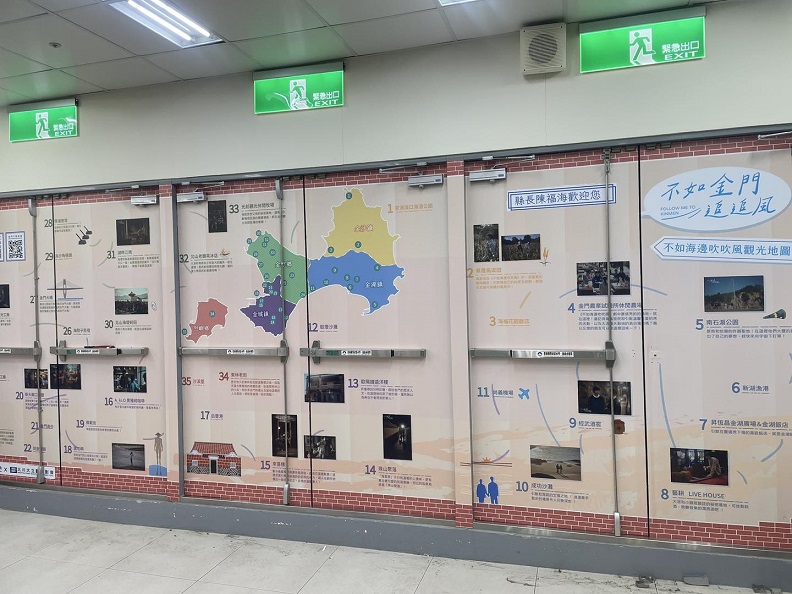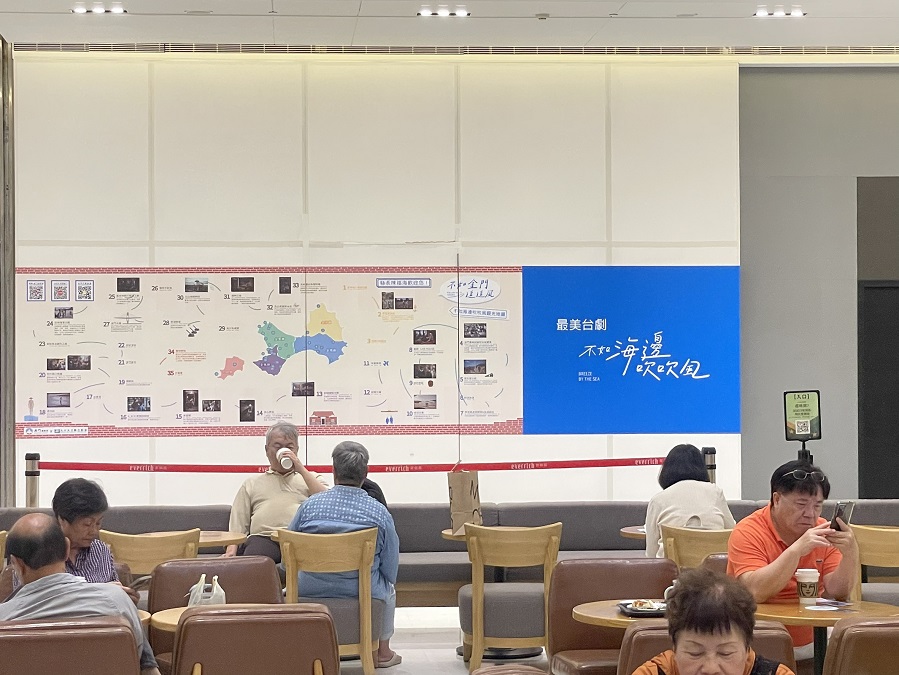 《不如海邊吹吹風》自開播以來,以金門絕美的自然景觀和溫暖的人情味贏得觀眾喜愛,劇中由郭雪芙與陳柏霖演繹的浪漫場景,更讓建功嶼、金門大橋、成功沙灘及沙溪堡等地成為話題熱點。而這波行銷宣傳中,觀光處也在這兩大商場中設置大型的追劇地圖牆,方便遊客們追劇打卡,營造更沉浸式的追劇觀光體驗。(照片記者洪美滿翻攝)