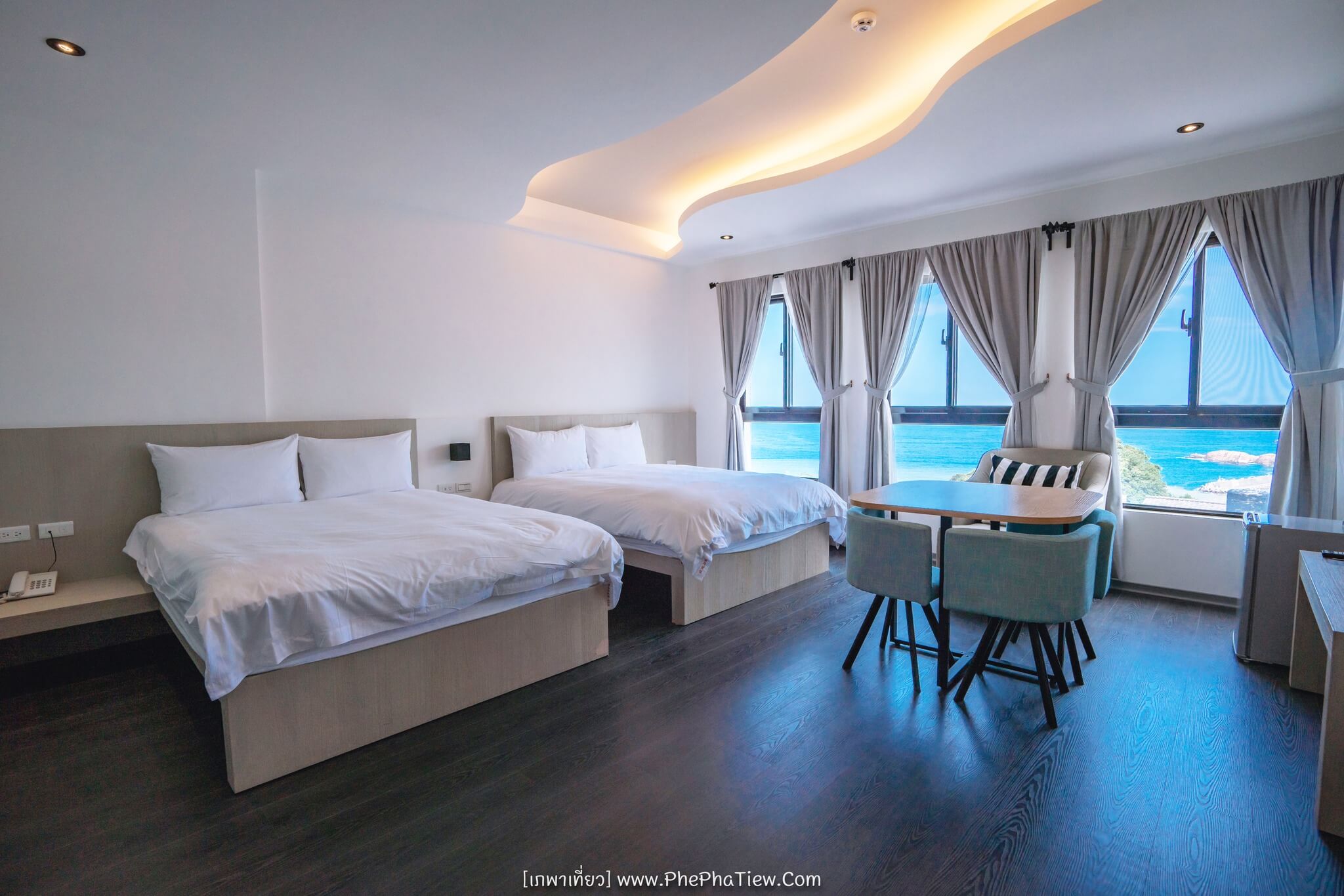 神隱國度民宿是一間擁有百年歷史的石牆、原始圓木為屋頂的老宅翻新而成,位於九份高處,視野佳,附近環境清幽,可瞭望基隆嶼和雞籠山,眼前的風景彷如山水畫般,不同時刻有不同樣貌。有4間雙人房和1間四人房,房間布置的現代溫馨,公用大廳不大,但設施齊全,甚至還有烘鞋機可以使用。最多12人包棟,採自助入住,當天會傳訊息告知公用大廳和房間的密碼,另外可以幫忙預約夜間導覽、手捏陶等體驗很方便。神隱國度有一個絕美景色的私房觀景台,遼闊的視野和令人心曠神怡的好空氣,美的讓時間彷彿都慢慢停下來。