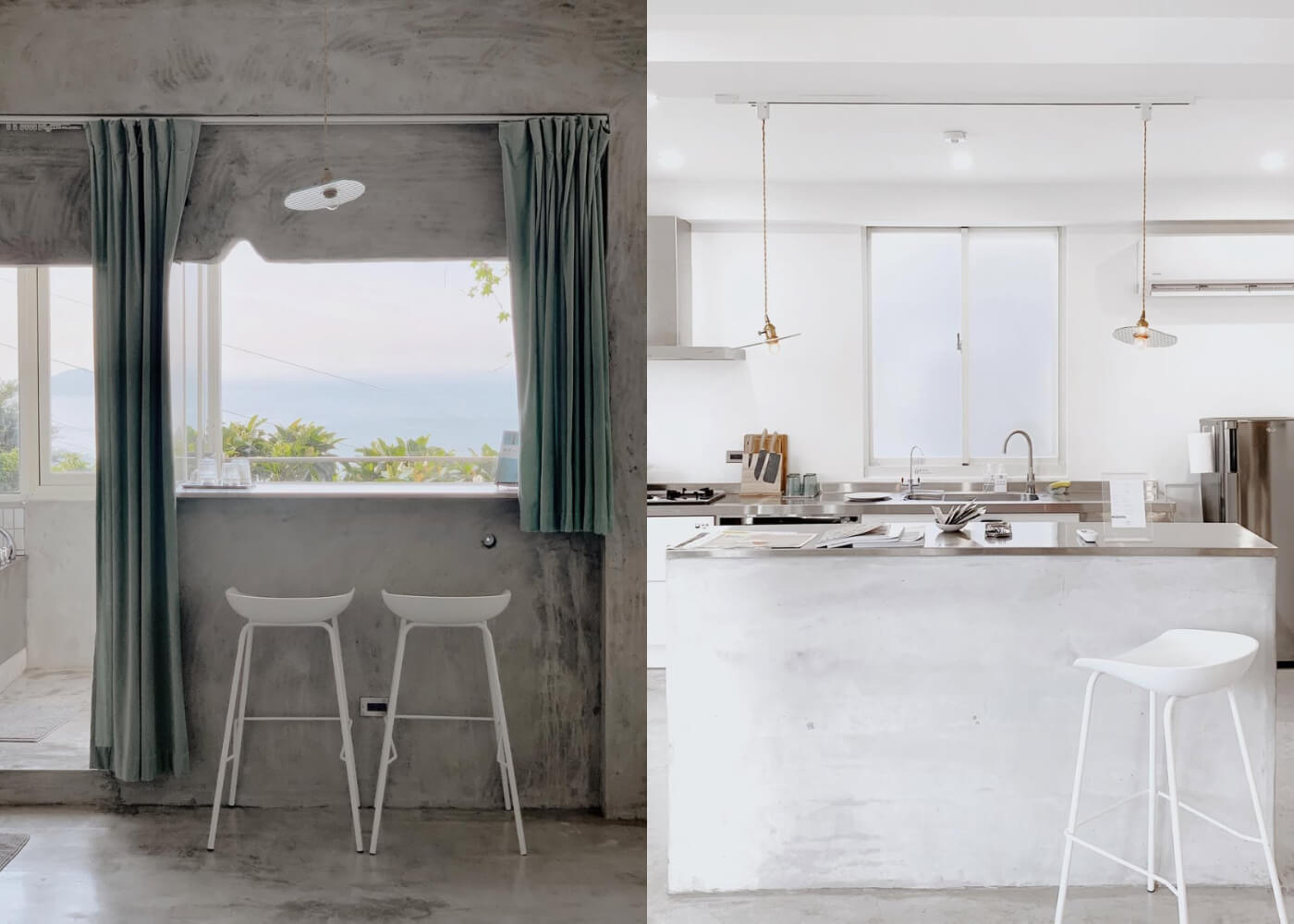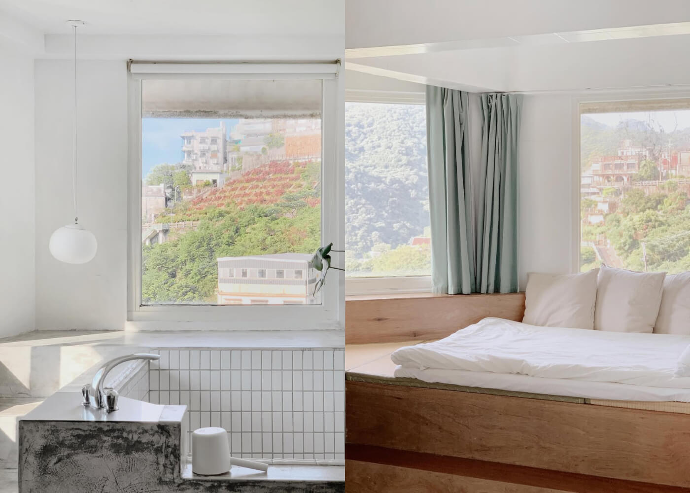 山中夢遊 綠光,一間面山看海的房子坐落在九份老街尾,靜謐住宅聚落的老房子,屋內保留百年前老民居的厚石牆,並將往日美好年代的古味傢俱,融入現代設計巧思的住宿空間,綠、白、灰三種色調,組成簡約單純的美好。綠光共有兩層樓三間房,每房皆附超大浴缸與陽台,房間配置為兩間雙人房和一間四人房,包棟可8人入住,每晚12,800起。大客廳裡有著大餐桌與廚房,夜晚三五好友可以在餐桌上把酒言歡,留下美好的共遊回憶。