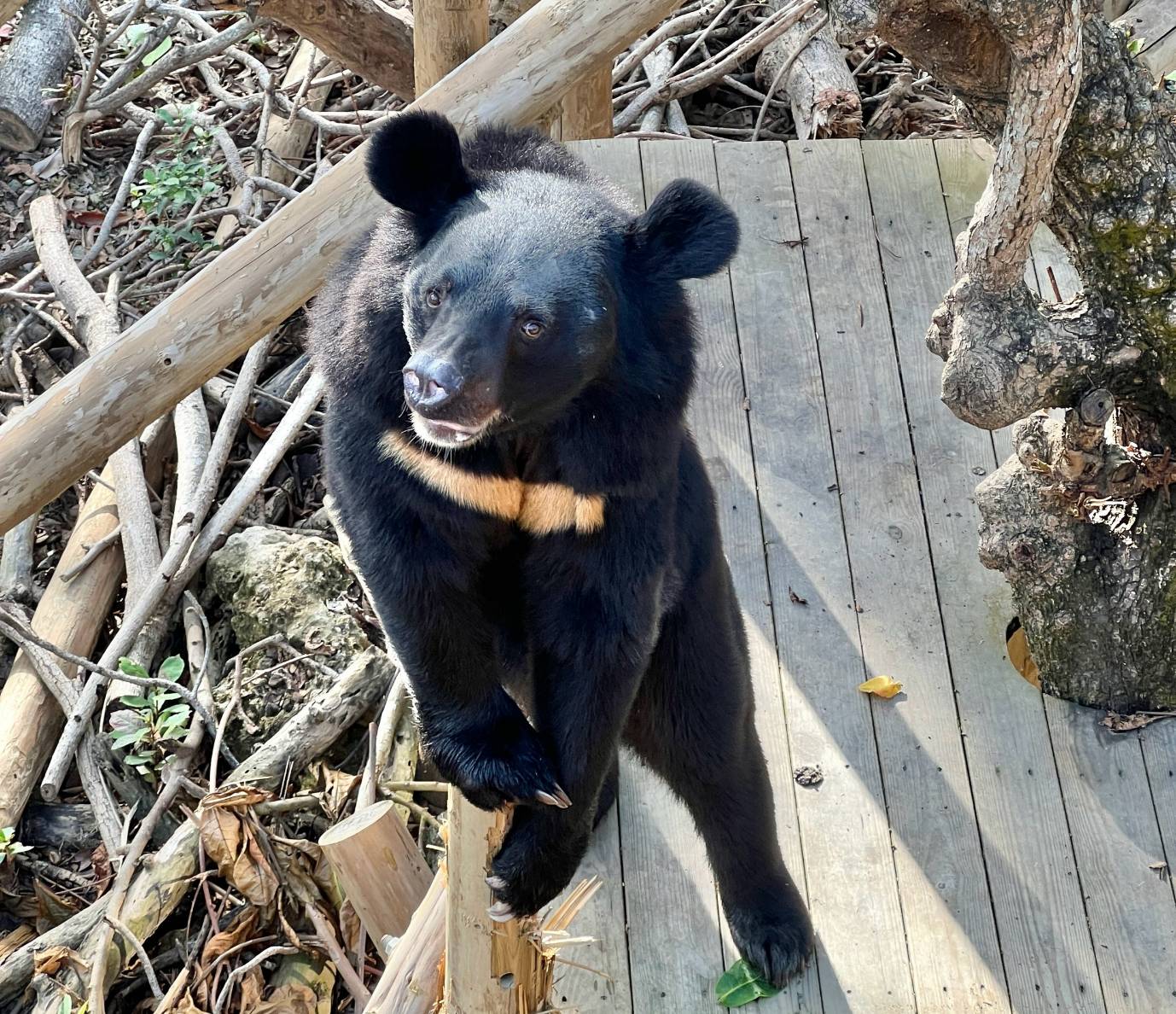 ▲台灣黑熊「波比」萌樣高閔琳補充說,園內目前共有四隻黑熊,考量到黑熊獨居性,特別設計獨立棲地環境,並擴大展區活動範圍。「AI智慧環境導覽系統」,讓「波比」即使不在遊客視線範圍內,也能透過即時地圖功能顯示牠動態位置,例如是否在樹後休息、進入室內獸舍或隱於陰涼處。此外,系統配備多角度攝影機,讓遊客能即時觀察「波比」的生活環境,提升參觀的沉浸感。另為服務國內外遊客,該系統還提供中、英雙語介面,確保到訪者都能輕鬆使用這項創新導覽功能,歡迎民眾前來體驗。