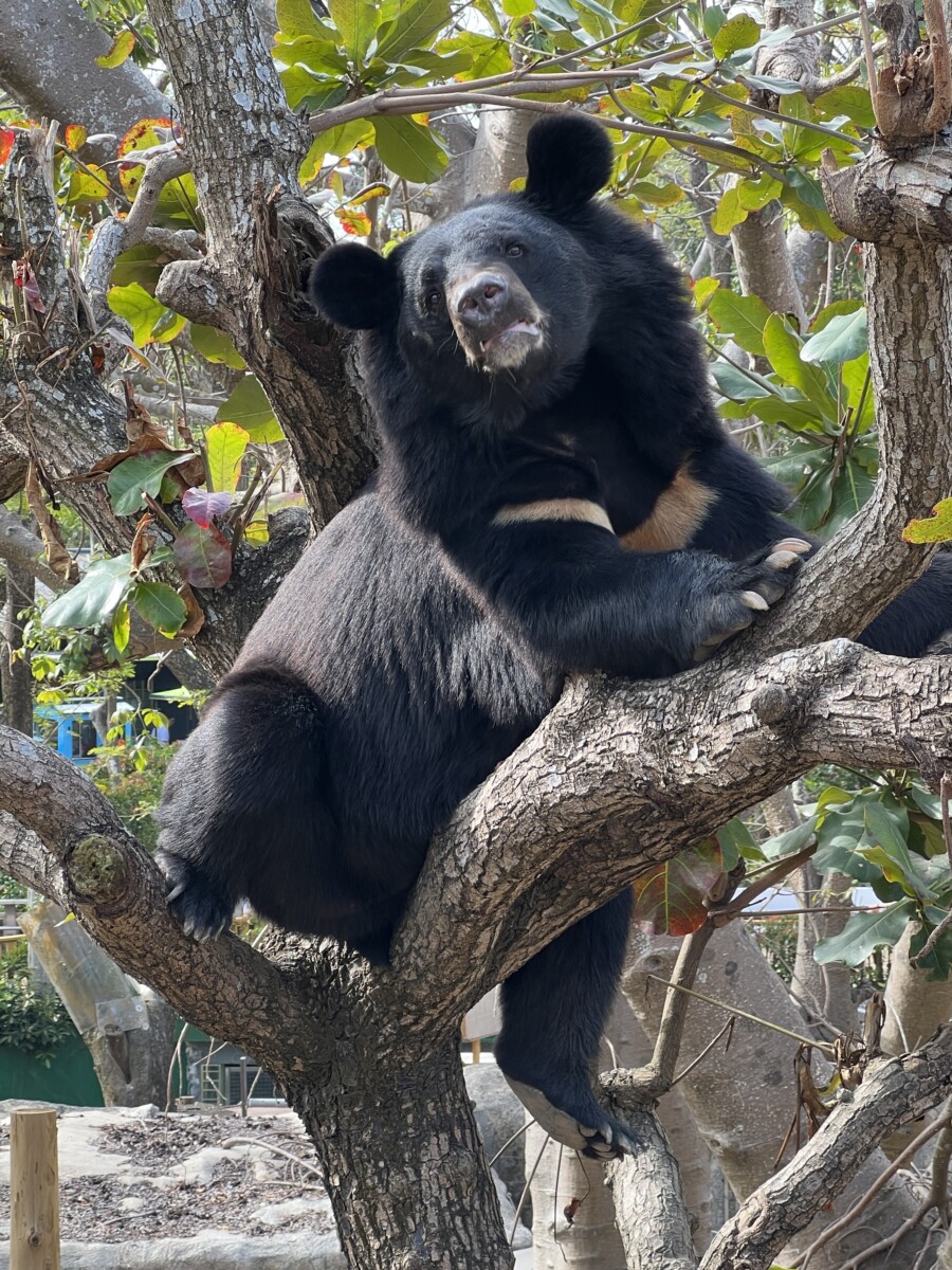 ▲台灣黑熊「波比」爬上樹梢遊客可搭乘56號公車直達動物園,或於捷運鹽埕埔站及輕軌文武聖殿站下車轉乘56號公車。此外,壽山動物園也歡迎想為動物們盡一份心力的民眾加入動物認養行列,並按讚追蹤其臉書及IG粉絲團,隨時關心動物的日常生活。更多詳情可上壽山動物園臉書 https://www.facebook.com/ShouShanZoo 查詢。(圖╱高市府觀光局提供)