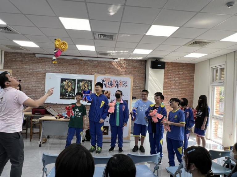 文化局長朱淑敏表示,在工作坊課程中,臺北木偶劇團的演師們詳細介紹生、旦、淨、末、丑等布袋戲行當,說明布袋戲隨著歷史發展從傳統布袋戲逐漸演進形成金光布袋戲(內臺布袋戲)及電視布袋戲的變化,也邀請同學拿起戲偶,嘗試操作武打招式,體驗掌中乾坤。
