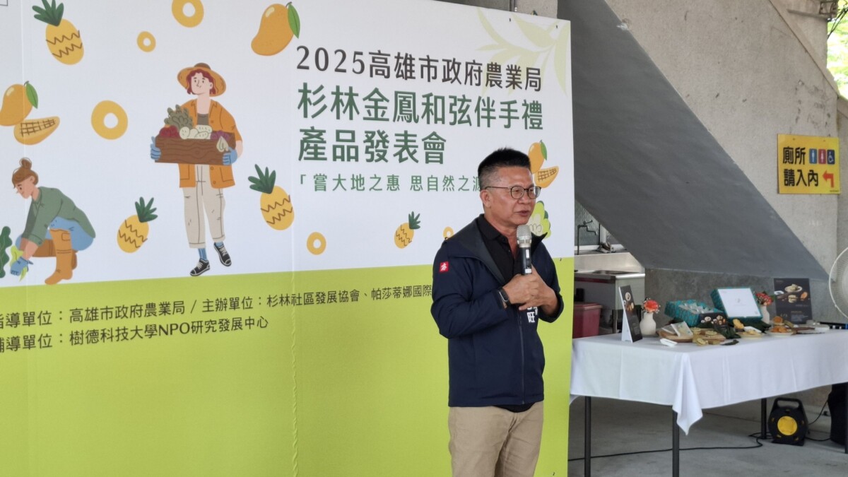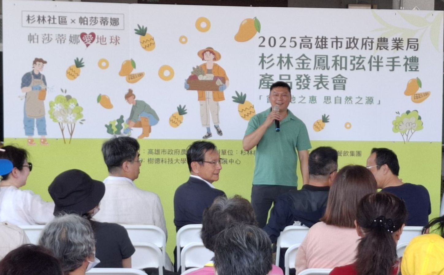 杉林社區發展協會於昨(3)日假該社區活動中心隆重舉辦新產品成果發表會,正式推出由社區與帕莎蒂娜餐飲集團共同研發的「杉林金鳳和弦伴手禮」,包含「鳳梨酥盒」及「金萱芒果沙布烈」兩款風味甜點,絕佳美味驚豔四座,現場賓客雲集、氣氛熱烈。農業局局長姚志旺親臨出席,對社區與企業合作成果表達高度肯定與感謝。