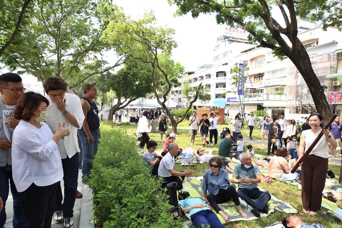 為歡慶打開「穿城之水」第二期,今日市府也在現場舉行「嘉義總動園」活動,人潮絡繹不絕,規劃包含吉他社表演、角色互動拍照、草地野餐、繪畫心療室、市集導覽、限量好禮兌換等,讓大小朋友在充滿創意與療癒氛圍中,重新認識這座城市綠肺的魅力。活動現場也設置環保換好禮專區,民眾踴躍以廢電池兌換餐券與野餐墊,展現嘉義市推動綠生活、環境教育的實際成效。