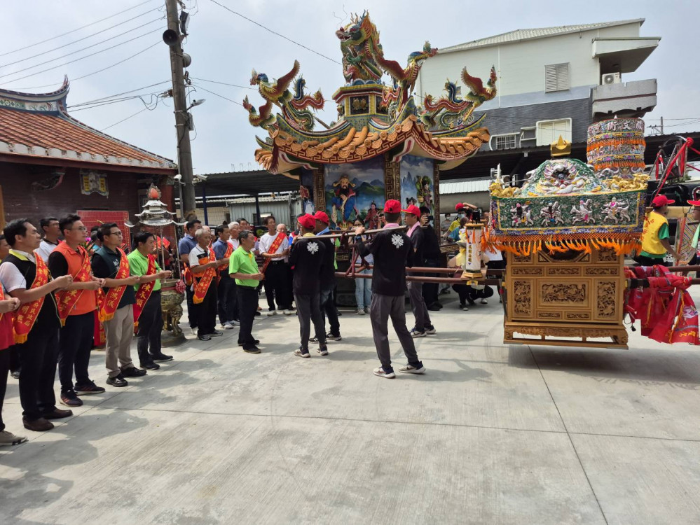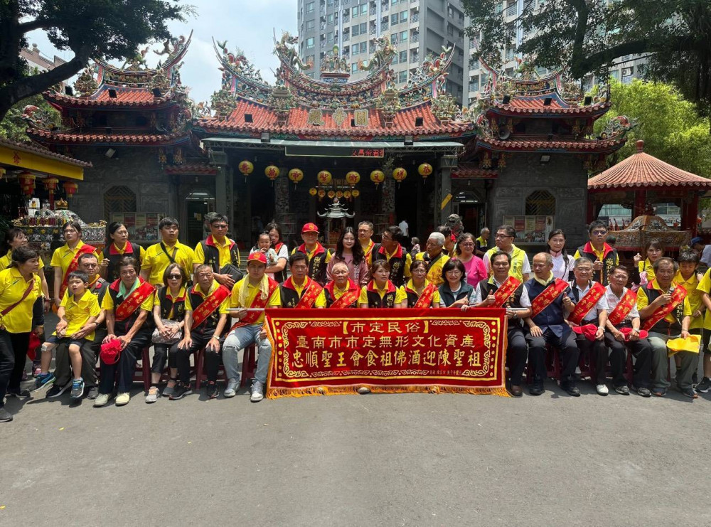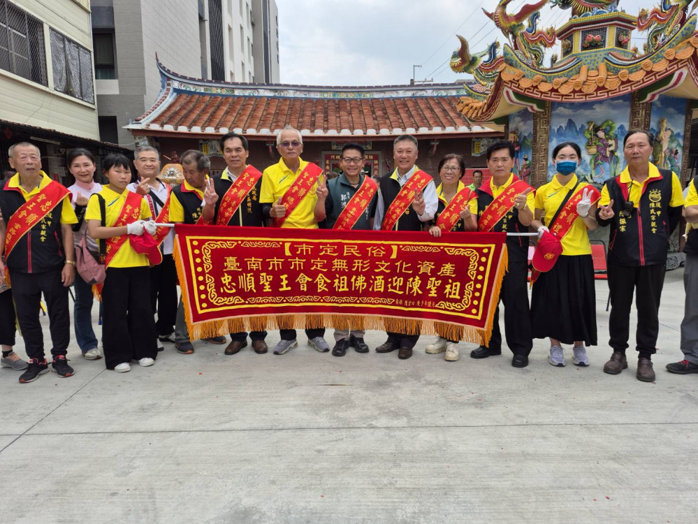 【勁報記者杜忠聰/臺南報導】市定民俗「忠順聖王會食祖佛酒迎陳聖祖」是新豐地區、新化、東區後甲及安南區土城等陳姓庄頭傳承百餘年的民俗信仰活動,固定於每年農暦二月十五日辦理祭祖典禮及食祖佛酒平安宴活動,今年農曆2月15日在原值東庄頭永康新樹里辦理食祖佛酒平安宴,於會中跋桮產生新的值東庄頭由東區後甲以5桮跋得。今(4)日上午一大早迎請陳聖祖隊伍便從東區後甲關帝殿出發,由東區後甲陳氏宗親會會長陳綺雯、總幹事陳丁標、爐主陳王舒怡等率隊前來永康新樹里,由值東爐主陳福成、宗親會會長陳日祥及宗親會眾委員、宗親等共同迎接。