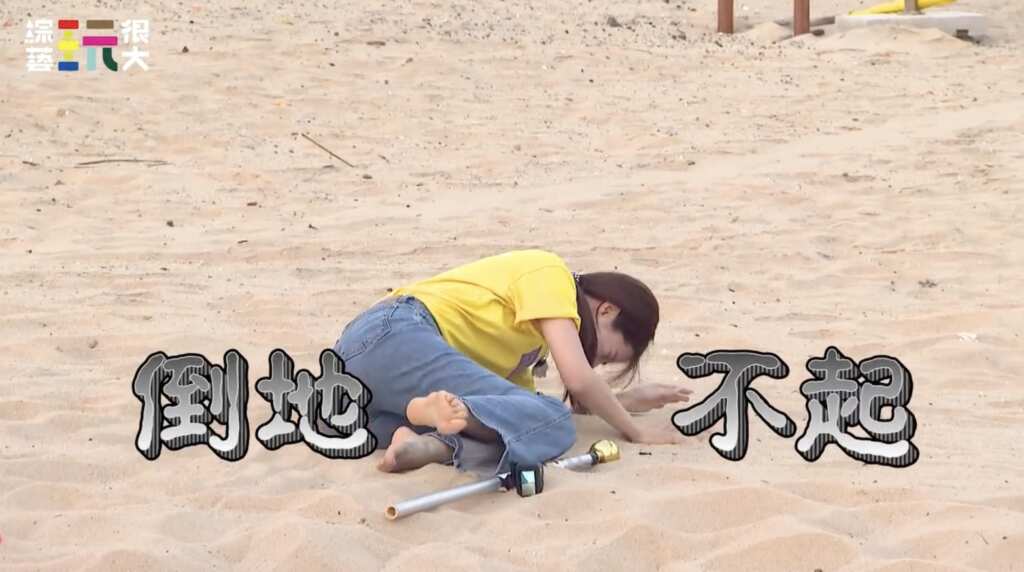 ▲阿部瑪莉亞倒地不起。(綜藝玩很大提供)首次參與《玩很大》的阿部瑪利亞,也在「轉圈圈」挑戰中意外摔倒,讓先前信誓旦旦稱她「跳芭蕾出身、平衡感超好」的隊友們瞬間打臉,笑聲不斷。楊銘威則在面對「熱咖啡挑戰」時大喊燙口,直呼:「這是整人節目吧!」KID則在一旁無情催促:「趕快喝!不要講話啦。」