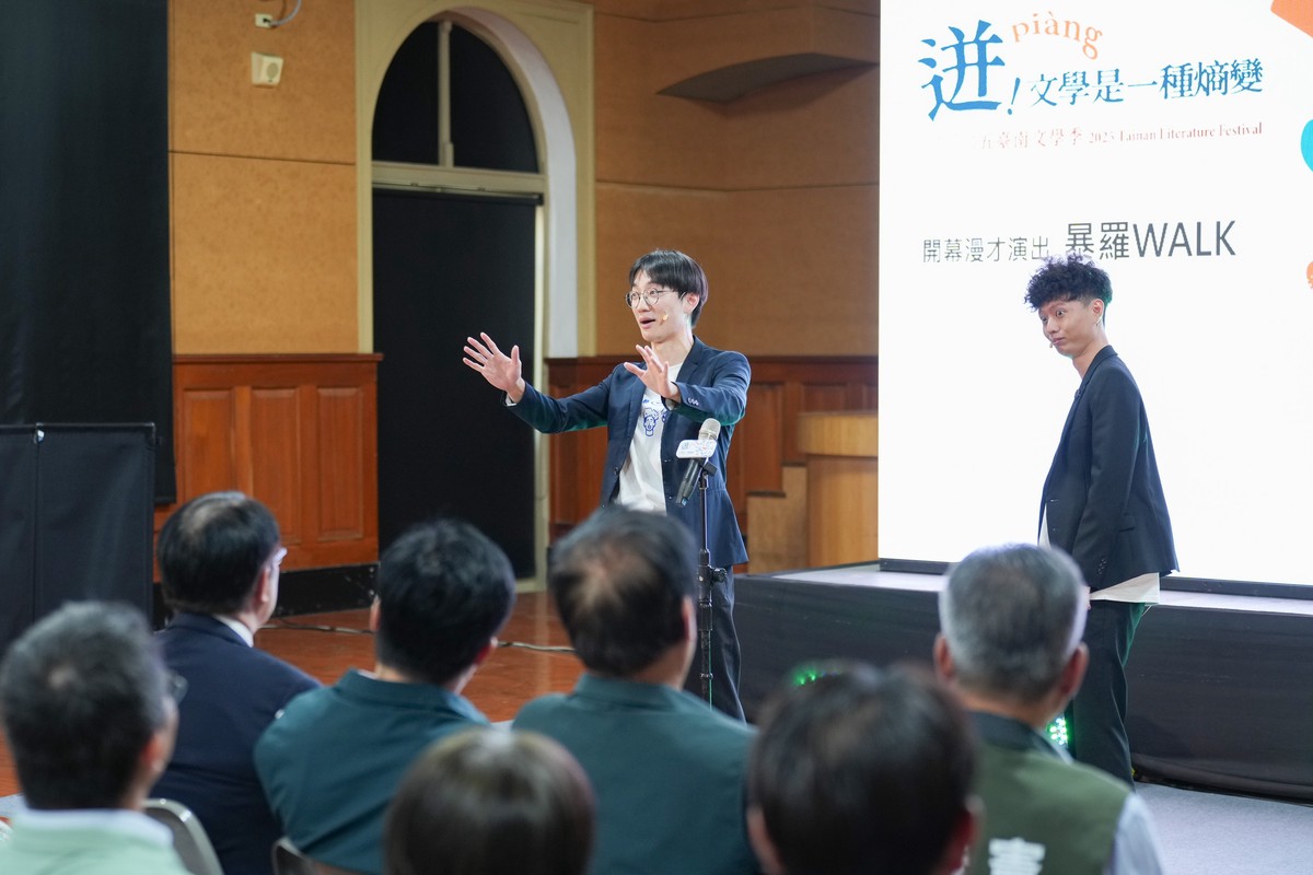 記者會上首度公開該屆臺南文學季宣傳影片,以在地知名漫才團體「暴羅WALK」主演,影片融合經典與當代臺南文學作家語句,透過節奏明快、附有張力的漫才演出形式,帶出跨時代的文學共鳴。緊接著鏡頭轉入一條被反覆拉扯的拔河繩,象徵文學在秩序與混亂間的掙扎變化,最後於斷裂瞬間爆發,「迸!文學是一種熵變」的主題強烈浮現其上,為今年文學季奠定鮮明調性,也為影片畫下震撼結尾。