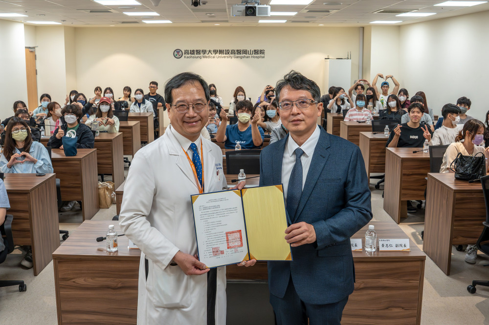 【大成報記者杜忠聰/臺南報導】高醫附設岡山醫院即將設立滿一周年之際,嘉南藥理大學與高醫岡山醫院於5月8日下午正式簽署合作備忘錄,象徵雙方在學校與醫院合作上的嶄新里程碑,此次合作將為嘉藥學生提供見習參訪、實習及就業機會,同時展開醫藥與醫療照護管理相關的研究與發展,並共同推動AI技術在智慧醫療領域的應用與創新。