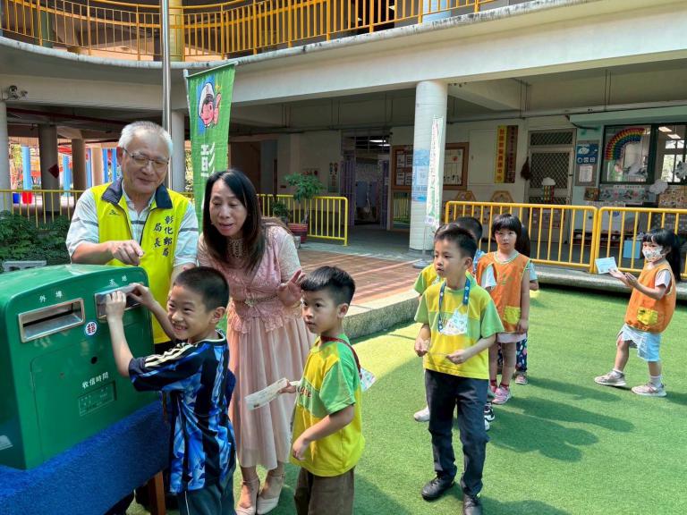 現場準備收信裝置讓小朋友體驗交寄信件,將自己對媽媽的愛交由中華郵政的綠衣天使們傳遞,讓孩子學習表達愛與感謝,於母親節前夕,彰化郵局與平和非營利幼兒園的孩子們,共度別具意義又溫馨的母親節。