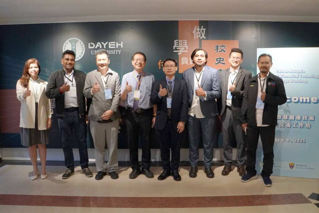 ▲馬來西亞學者與大葉大學教授相見歡。(記者林明佑翻攝)方文昌校長表示,大葉大學擁有工學院以及護理暨健康學院,兩院下的系所近年來更是致力於工程與醫療的跨領域整合研究,很開心可以邀集來自台灣與馬來西亞的優秀學者共同參與工作坊,台灣在技術創新與高端研發方面具備深厚實力,而馬來西亞在應用導向與市場推廣方面展現出高度潛力,雙方優勢互補,正是開展跨國智慧醫療合作的最佳契機,期待透過技術交流,促成更多創新思維,將台馬雙方的科研實力推向國際,助力全球健康科技發展。