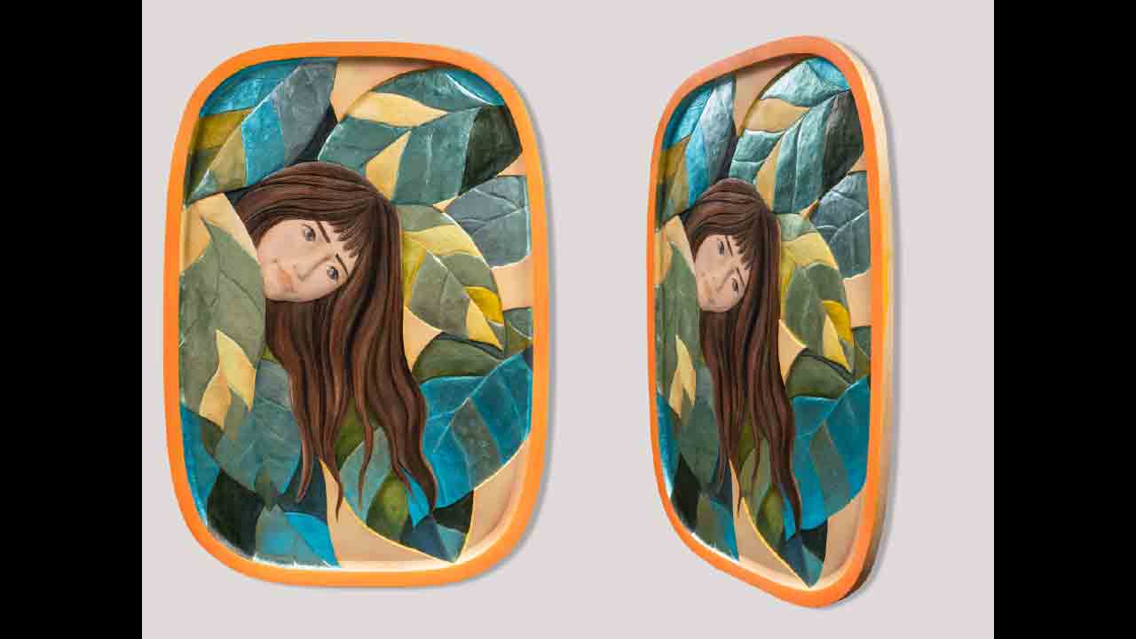 ↑圖說:江基名 ChiMing Chiang,沛│2025│110×78cm│樟木、銀箔、壓克力顏料。江基名於1990 出生於彰化,浮雕作為藝術史中獨特的媒材形式,江基名透過浮雕,構築一個柔軟、模糊、介於真實與虛構之間的觀看場域。關注光影、倒影、窗面、網格與材質肌理如何引導觀看者進入一種介於凝視與投射之間的心理狀態。人物常以背影、剪影或倒影的形式出現,避免明確的身份敘事,反而強化觀看者主觀感知的流動與停留。(圖片來源:寶吉祥藝術中心提供)