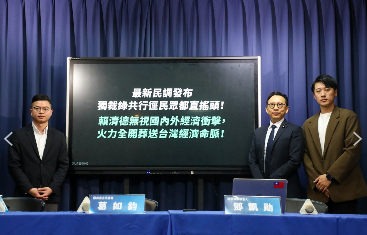 國民黨7日召開「獨裁綠共行徑民眾直搖頭!賴清德無視國內外經濟衝擊,火力全開葬送台灣經濟命脈!」記者會,會中公布民調顯示,有近六成(57.2%)的民眾認為,面對全球經濟風暴,賴政府拿不出對策,只會搞政治動員大惡罷。國民黨桃園市議員凌濤抨擊,賴總統竟然把匯率戰結果怪罪是在野黨唱衰炒作,韓國央行行長李昌鏑說出真相,就是美國政府向台灣或向亞洲國家要求貨幣升值。面對國際經貿危機,民進黨唯一對策就是發起大惡罷,根本就是「台幣大升值,民主大貶值」。