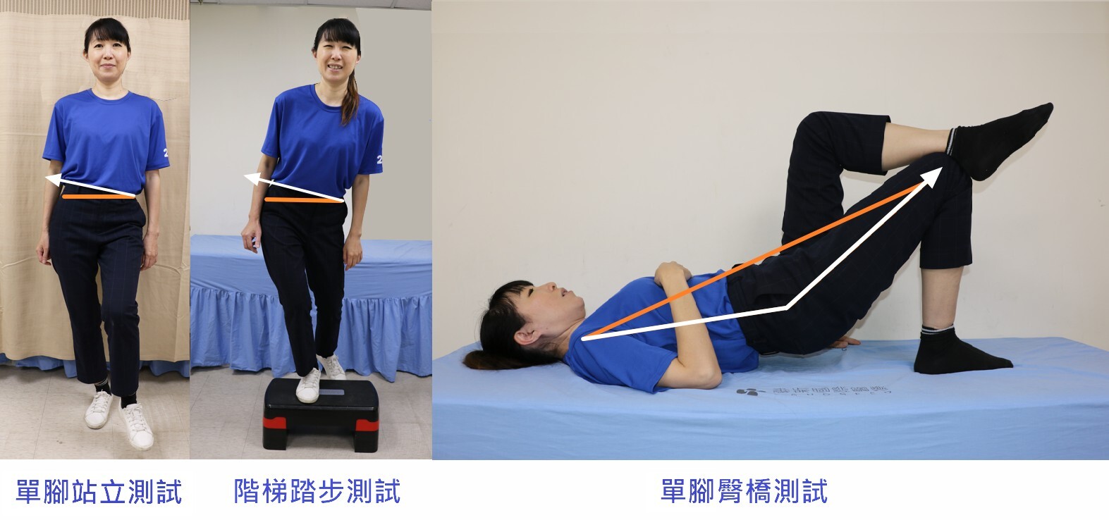 朱怡妍主任提供三種居家檢測法,幫助民眾快速評估臀肌功能: