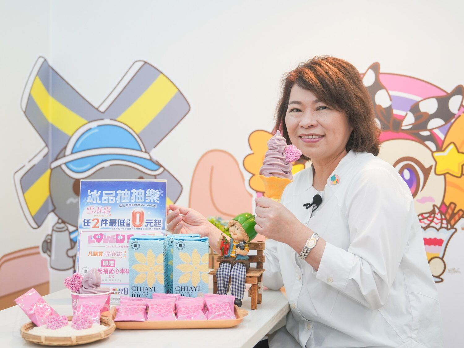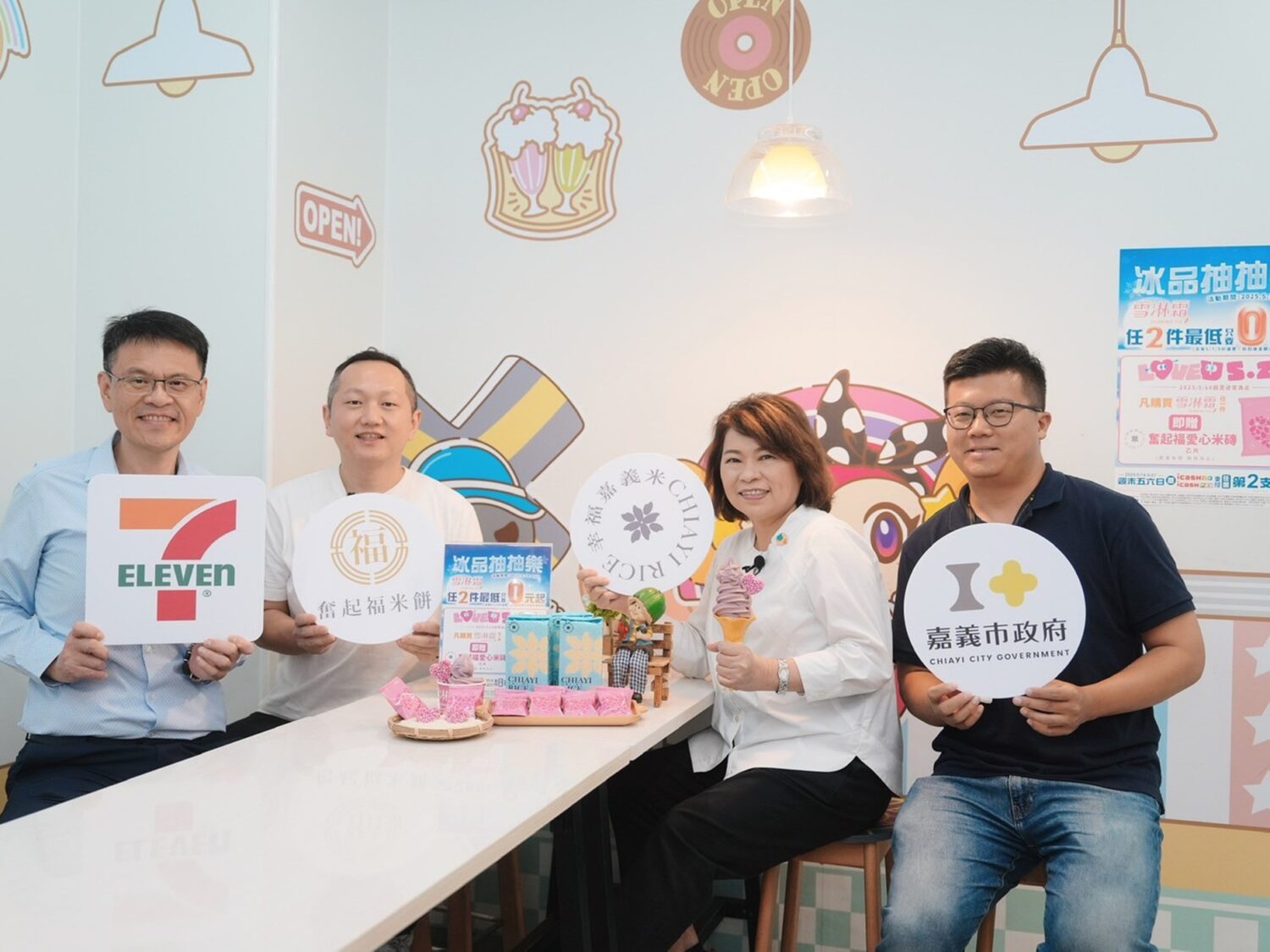嘉義市長黃敏惠為推廣嘉義幸福米,特地前往7-ELEVEN拍攝短影音,並化身為代言人,期能透過年輕化行銷方式推廣在地農產,吸引更多年輕世代認識嘉義的米食文化與農業價值,同時自5月16日起,至全台限定1000間7-ELEVEN門市凡購買霜淇淋乙支,即可獲贈火龍果愛心米磚乙片,邀請大眾一同在516國際白飯節與520浪漫日子,品嘗嘉義最幸福的米點心。