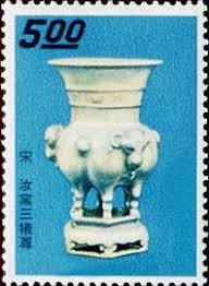 如50年「前十八寶」古物郵票中,入鏡的尊有宋朝丁香紫尊、清朝龍鳳尊,以及商朝饕餮紋方尊;材質分別是瓷器、玉器和銅器。