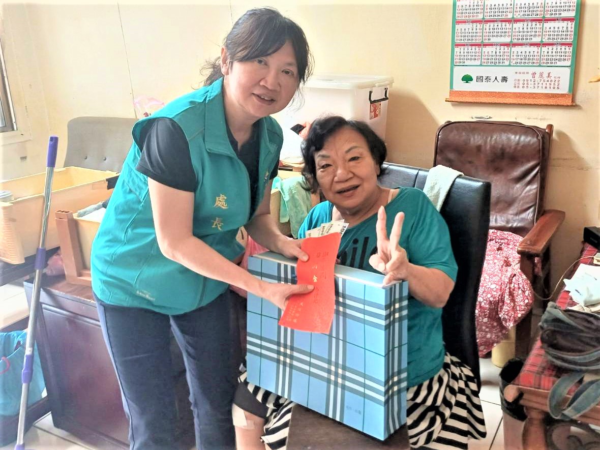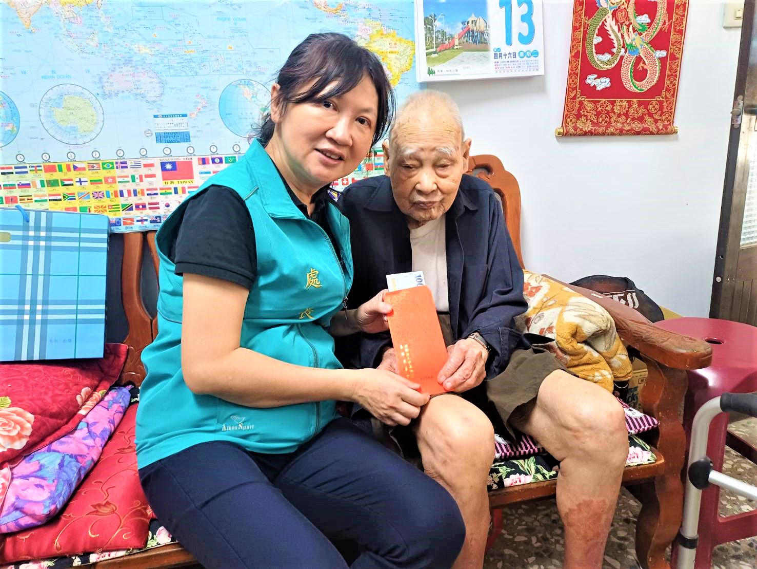 關懷高齡101歲榮民蕭伯伯時,感覺伯伯身體非常虛弱喘鳴聲也很大,但蕭伯伯看到榮服處許淑菁處長及社區服務組長來探視他,精神立刻好起來。許處長仍是關心伯伯伯身體狀況,伯伯表示已經有看過醫生,目前正常服藥中,社區服務組長也連繫其兒子要多注意伯伯狀況。另外,張阿姨等三位,皆因年邁獨居或病痛造成生活不便,家庭照護壓力較為沉重,特別需要關懷與協助。榮服處除致贈慰問金及生活需用品外,也關心長者們身體狀況,同時叮嚀天氣漸漸炎熱要多注意補充水分及防曬,有需要協助請隨時聯繫榮服處。