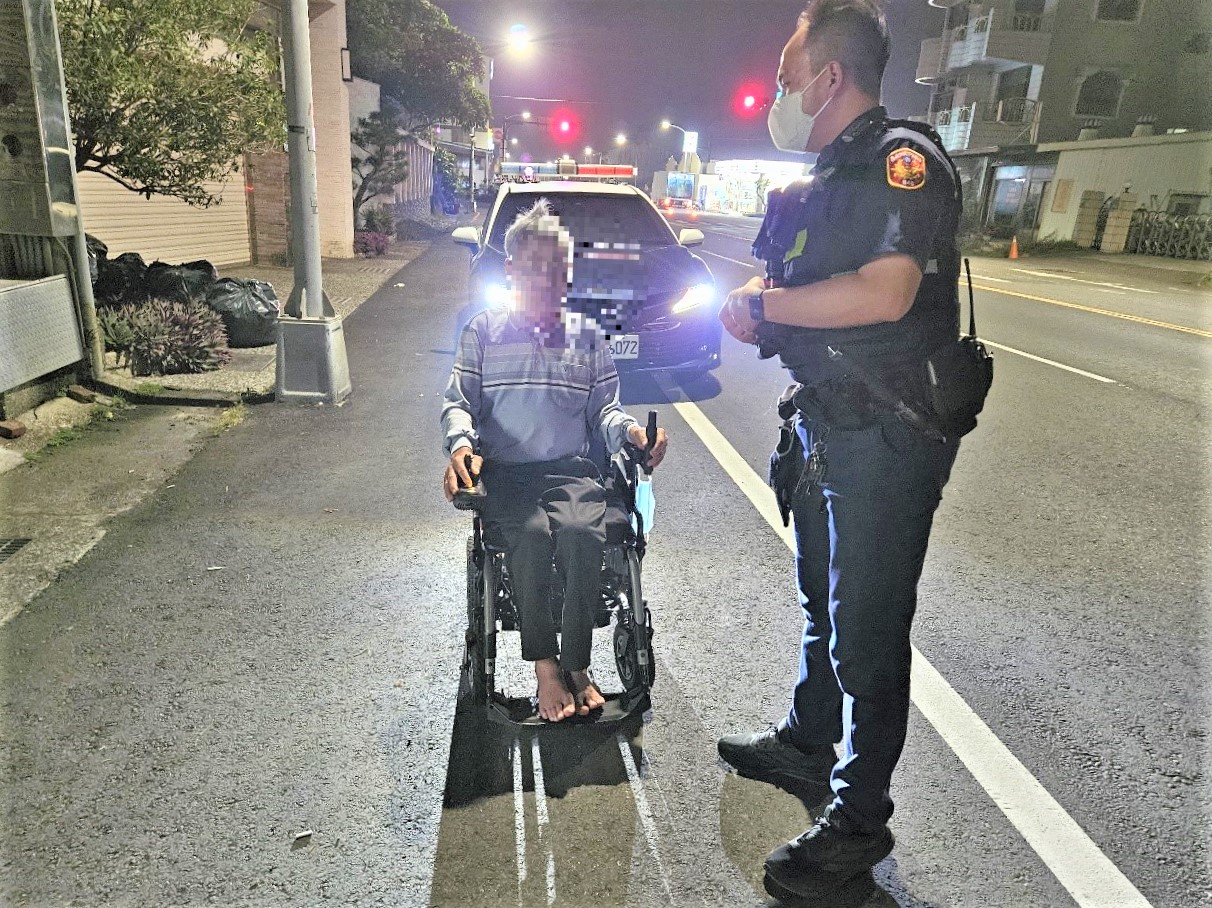 考量曾翁雖然坐著電動輪椅但需要照護,員警憂心決定不讓曾翁獨自離開,而是由陳員推著電動輪椅全程徒步陪同護送安全返家;曾翁在員警陪伴下情緒逐漸穩定,當返抵住處時家屬喜出望外已在家門前等待,家屬對警方主動協助細心照料深表感謝,並表示曾翁經常有獨自走失紀錄,家人雖有加強照護,仍不慎讓其獨自外出,幸得警方即時發現避免發生意外,員警也向家屬提醒,對於曾翁年事已高且有失智現象要注意身體狀況及生活起居動向,避免獨自外出而發生憾事。