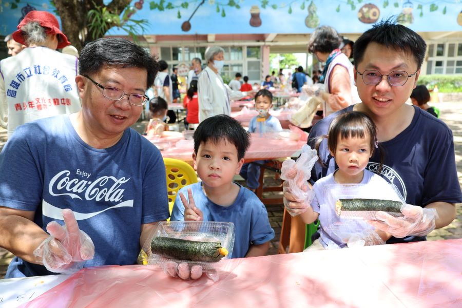 活動中就讀幼兒園的曾彥文和郭知甯小朋友都是和爸媽一起來參與活動,兩位小朋友說都很喜歡參加「美食DIY」活動,很享受自己動手完成「成品」的成就感。今日的捏捏壽司也讓她覺好玩又有趣,還能馬上品嚐自己親手做出美味可口壽司。
