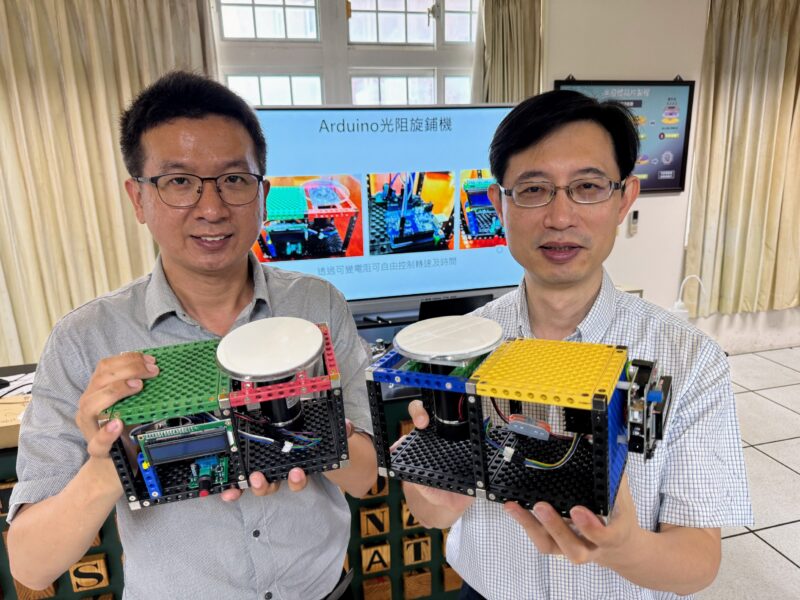 又如,半導體中的「黃光微影」製程,課程以光固化溶液為材料,搭配紫外光曝光與祥儀慈善文教基金會贊助的「科技寶積木式自製旋鋪機」,模擬光阻塗佈與固化。學生並運用摩擦力原理推導黏滯行為,再透過「膜厚量測」驗證「旋鋪模型」。余進忠指出,這些探究式實驗體現108課綱的跨域統整與實作精神,讓學生不只深化物理概念,更實際銜接高科技應用。
