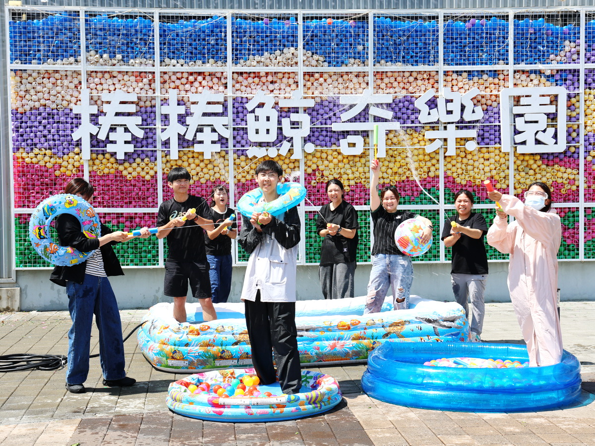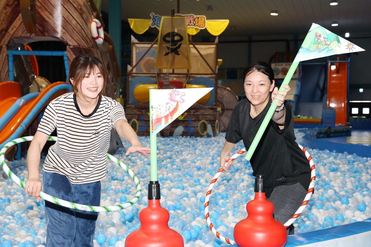 天氣越來越熱,棒棒鯨奇樂園館內冷氣大放送。端午限時活動,當天下午2點起,歡迎親子進館現場報名。活動在樂園戶外廣場設置兒童戲水池,見面禮就送限量水槍1支,請小朋友從水池吸滿水,再用水柱擊倒目標。第二關則是吹乒乓球到終點。第三關到百萬大球池玩趣味賽,呼拉圈化身海盜船,衝向終點奪標就過關。