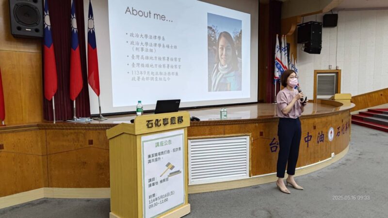 為持續深化廉潔誠信價值,促進法治精神深植公司文化,台灣中油公司石化事業部14日由高雄科大郭明恩助理教授擔任首場講座,並以「廉政治理多元策進,強化採購廉能機制」為主題,聚焦於「剖析當前採購流程潛在風險」及「採購制度與法規實務應用」,又於16日於上、下午接續辦理兩場廉政講座,分別由臺灣橋頭地方檢察署暨法務部廉政署南部地區調查組駐署鍾葦怡檢察官講授「廉潔職場齊打造,反詐意識共提升」,以及下午場由宋克芳律師(前高雄市政府政風處查處科科長) 講授「解析圖利與便民,陽光採購公開透明」,以強化守法意識與落實員工誠信,並避免管理疏失衍生廉政問題。