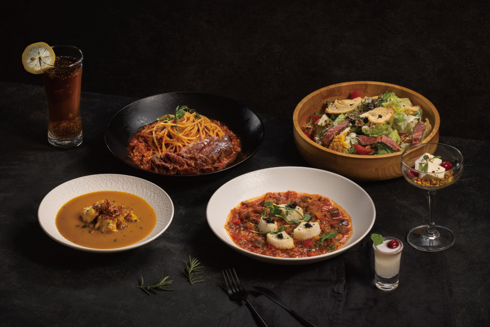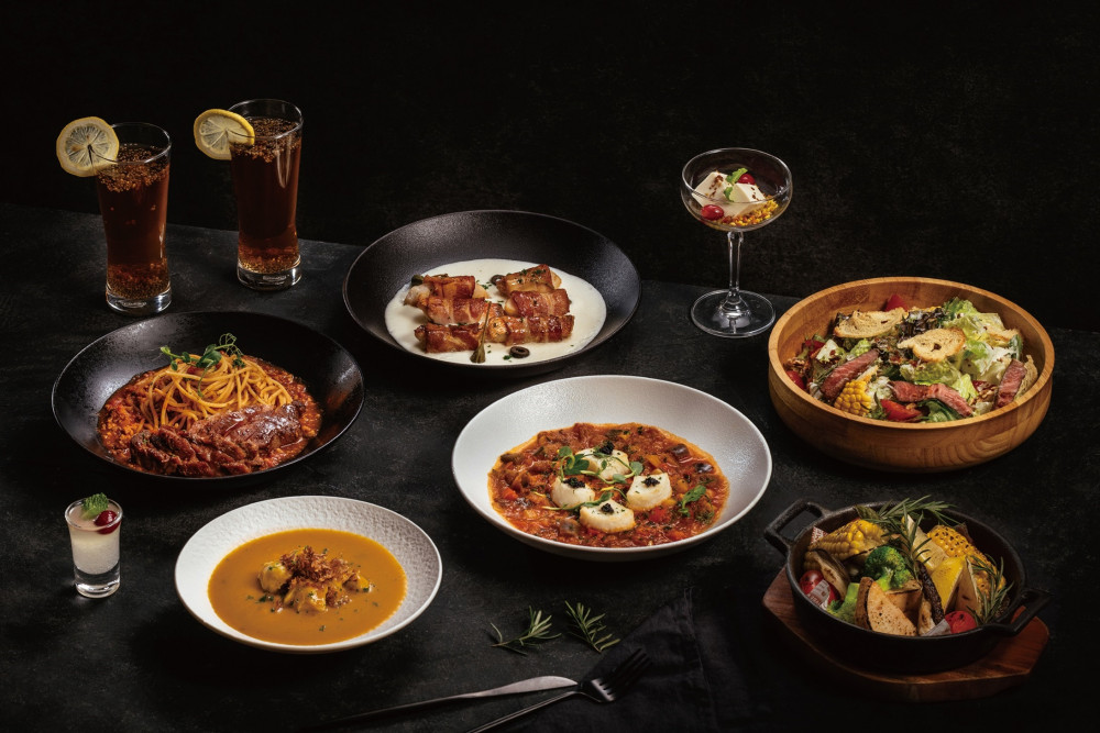 台南館有西班牙伊比利黑豚番茄肉醬麵、帕達諾香濃起司的碳烤美國極黑和牛凱薩沙拉,以及在地名店餐點變化出繽紛創意料理,像是手工《阿鳳浮水虱目魚羹》創作的浮水魚羹南瓜濃湯、《七誠米粿》創作成香酥米粿義式燴蔬菜、《豆腐洋行》食材則搖身為桂花杏仁豆腐芭樂蜜餞。雙人分饗一泊二食專案價4,250元起,四人分饗另享鮮魚培根佐檸檬白酒醬和炭烤義式時蔬總匯,一泊二食專案價6,120元起。