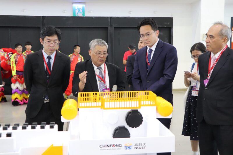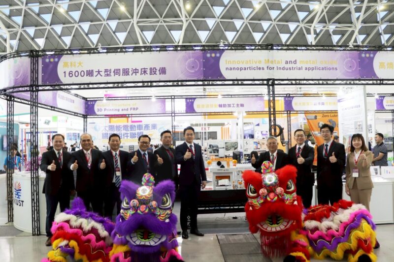 高科大本次展出的產業機械與智慧機械(AI應用)領域所展出的技術,包括以1:20的模型機來說明1600噸大型伺服沖床設備的沖壓能力;具IoT智能監控系統的微型液態矽橡膠射出成型機;高熵合金在刀具端的應用;近乾式微霧滴放電加工模組與石墨粉水霧滴EDM機構;超音波振動輔助加工主軸;扣件模具座之位移量的調整方法;智慧製造GPT:AI驅動之自適應節能排程系統;航太起落架鍛件與發動機用鍛件;USV與UAV異構多智慧體偕同作業技術及應用在智慧長照與健康照護專房所需之語音控制智慧病床和可後仰式電動站立架及可收式電動輪椅等產品。