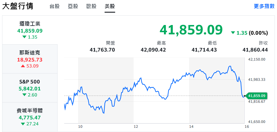 美國總統川普推動的「稅改法案」週四(22日)獲聯邦眾議院通過,美債殖利率自高點回落,美股尾盤遭摜殺,道瓊終場微跌1.35點、收41,859.09點;標普500跌幅0.04%、收5,842.01點;那斯達克上漲53.09點、收18,925.73點;費半回落0.57%、收4,775.47點。