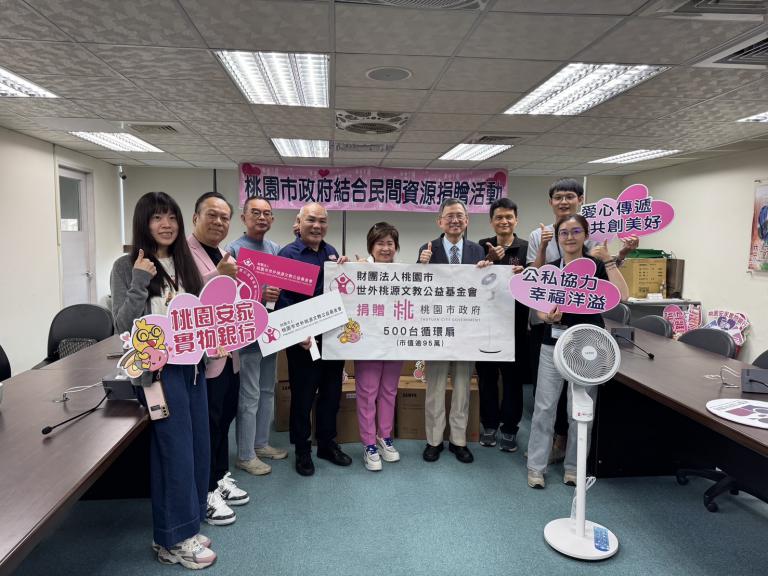 財團法人桃園市世外桃源文教公益基金會董事長張育美表示,基金會每年三節皆代表桃園市企業關懷在地弱勢,此次於端午節前夕捐贈循環扇,期盼為有需要的家庭送上實際幫助。