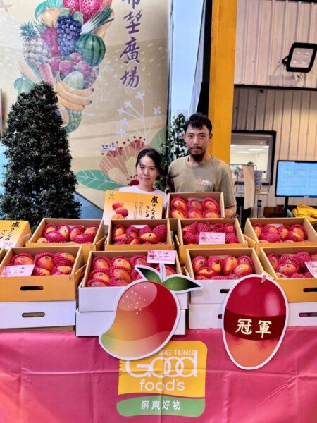 接下來是「屏東芒果金獎果饗快閃」,邀請屏東縣優質愛文芒果評鑑剛出爐的冠、亞軍農友親臨現場參加展售,帶來色澤亮麗、香氣撲鼻的頂級芒果,讓消費者親身品味,並可選購作為贈禮或自用。屏東縣政府農業處陳美智副處長表示,今年芒果產區花期受到氣候影響,產量較少,選果不易,能來參賽的農民都是萬中選一,非常不容易,枋山、枋寮、新埤等地,能在氣候的挑戰下,種出優質的果品,代表農友的栽培技術純熟!