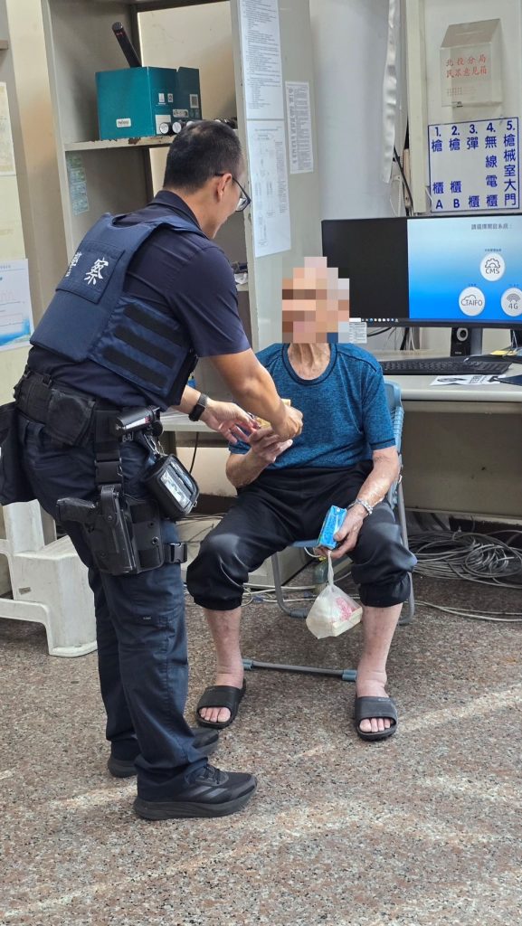 北投分局石牌派出所巡佐林耀珉、警員林志偉於本轄文林北路巡邏時,發現路旁有一名老翁疑似身體不適、跌坐於人行道上,精神狀況不佳並且語意表達模糊,需要警方協助。