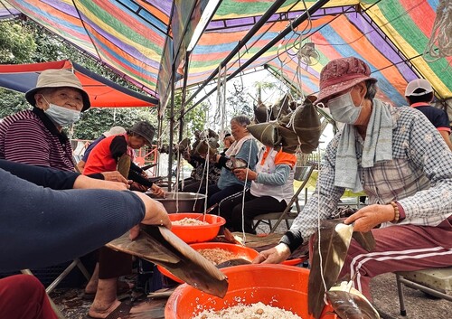 【漾新聞記者黃山高/高雄報導】旗山區公所為傳承端午節傳統濃郁人情味,舉辦第十九屆「旗手同心 情深意粽」慈善聯合關懷活動,在充滿熱鬧又歡樂的節慶前夕,以包粽關懷弱勢家庭,頂洲社區發展協會志工約23名清晨5點開始同心協力包愛心粽,於端午節前夕送予弱勢家庭及獨居長輩。