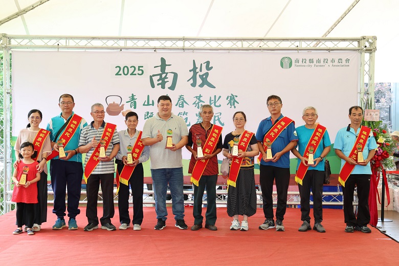 【記者 謝雅情/南投 報導】南投市農會24日舉辦114年度南投青山茶春茶比賽頒獎及模範農民表彰典禮,烏龍茶組及新品種組特等獎分別由莊佩君及林淑君榮獲,並有莊淵原等模範農民獲得表場,南投縣農業處長蘇瑞祥代表縣長許淑華前往祝賀鼓勵及頒獎。
