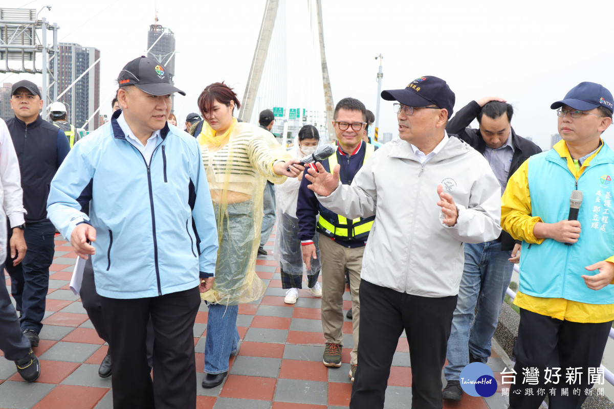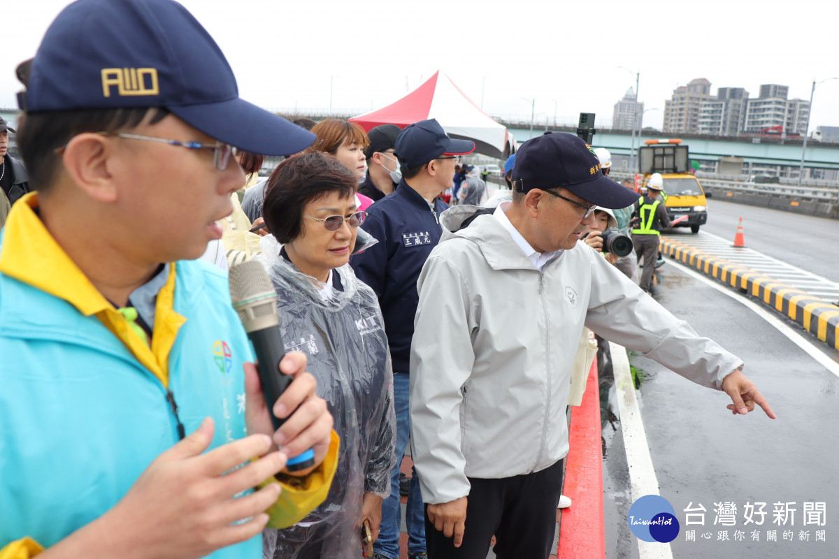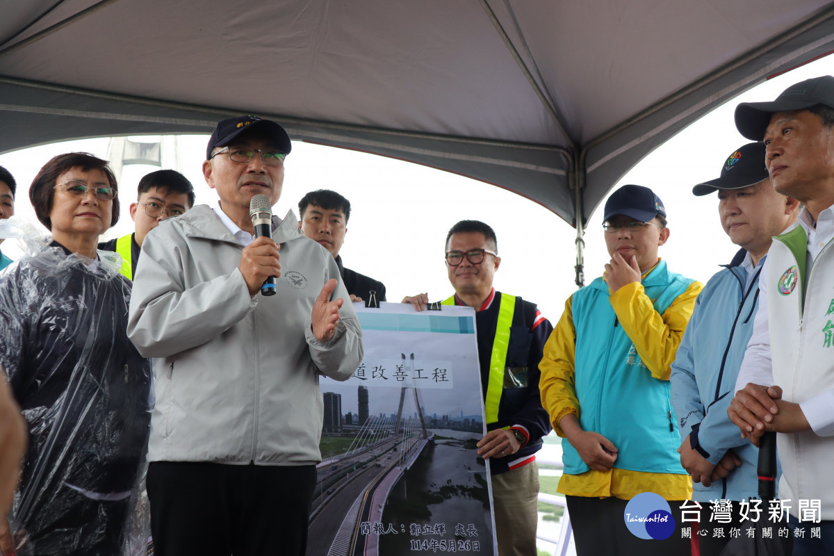 新北市政府改善新北大橋機車道S型彎道工程提前完工。侯友宜市長關心用路人安全,今(26)日上午到場視察,強調提昇用路人行車安全是政府首要目標,工程完工後可以降低機車行車風險,提升板橋往返三重地區交通品質。