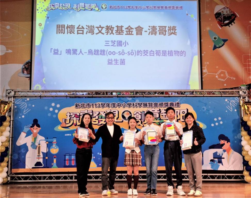 教育局表示,今年首度與關懷台灣文教基金會合作設立「關懷台灣文教基金會-濤哥獎」,鼓勵偏遠及非山非市學校投入科學研究,由三芝國小、三芝國中及瑞芳高工獲獎;同時持續第二年與廣達文教基金會合作「廣達博智獎」增額至3名,鼓勵學生運用科技解決生活問題,得獎學校包括沙崙國小、土城國中與新北高中。