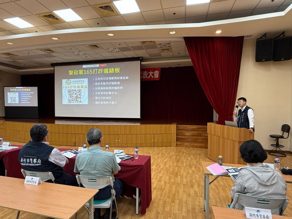 ▲新竹市警察局出席台灣科學園區科學工業同業公會會員代表大會,竹市警察局特別向與會企業代表進行反詐騙宣導,並推廣警政署「165打詐儀錶板」,以強化園區企業與員工的防詐意識。(圖/竹市警察局提供)