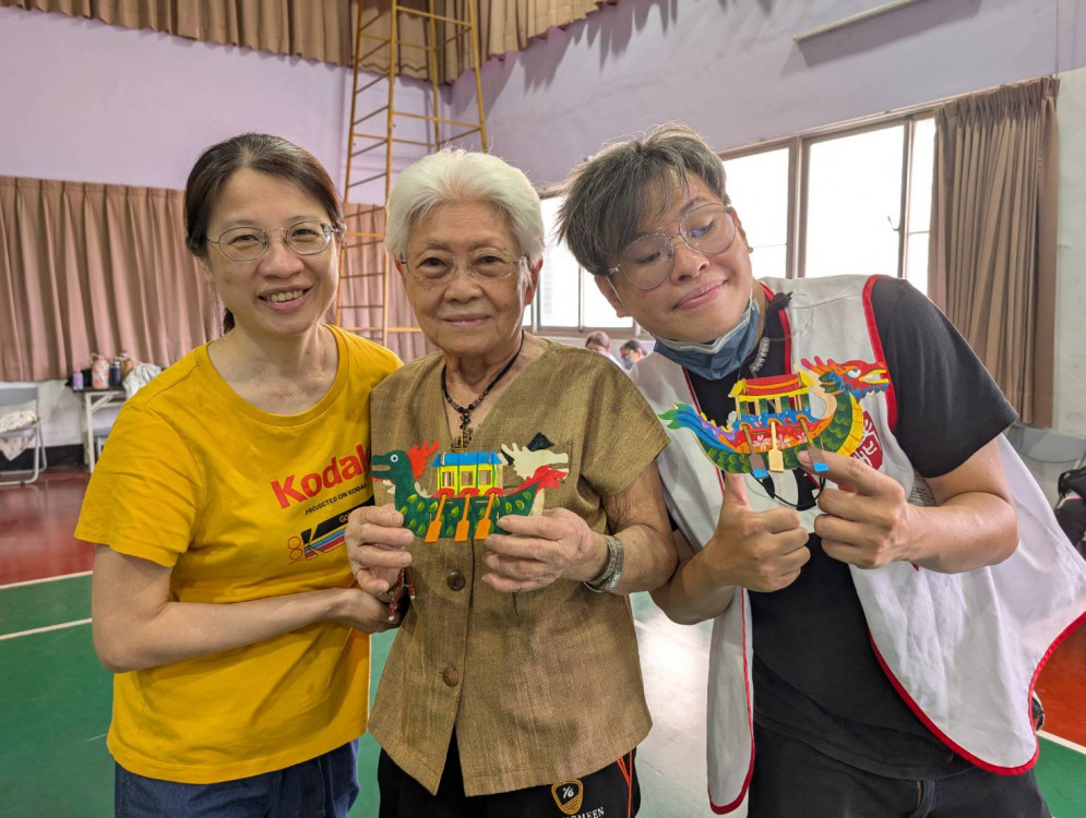 台電高雄區處端午送暖!邀91歲阿嬤畫龍舟!〈圖/記者翻攝〉