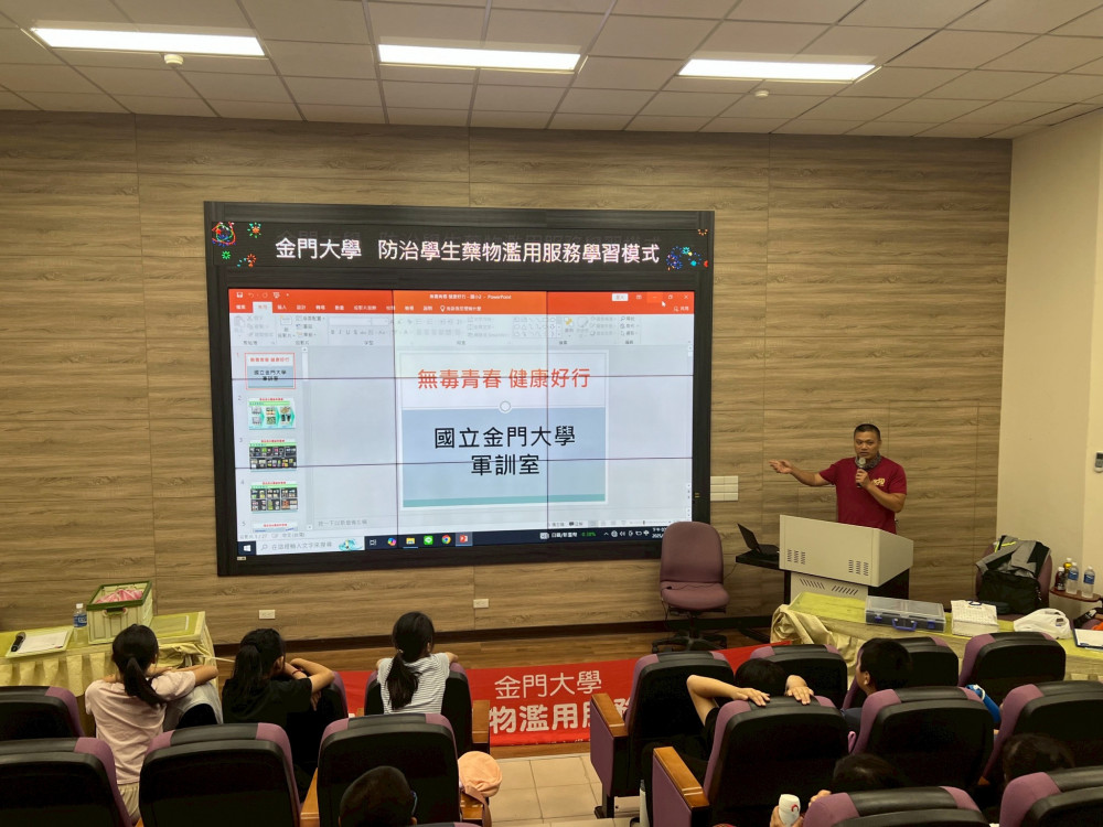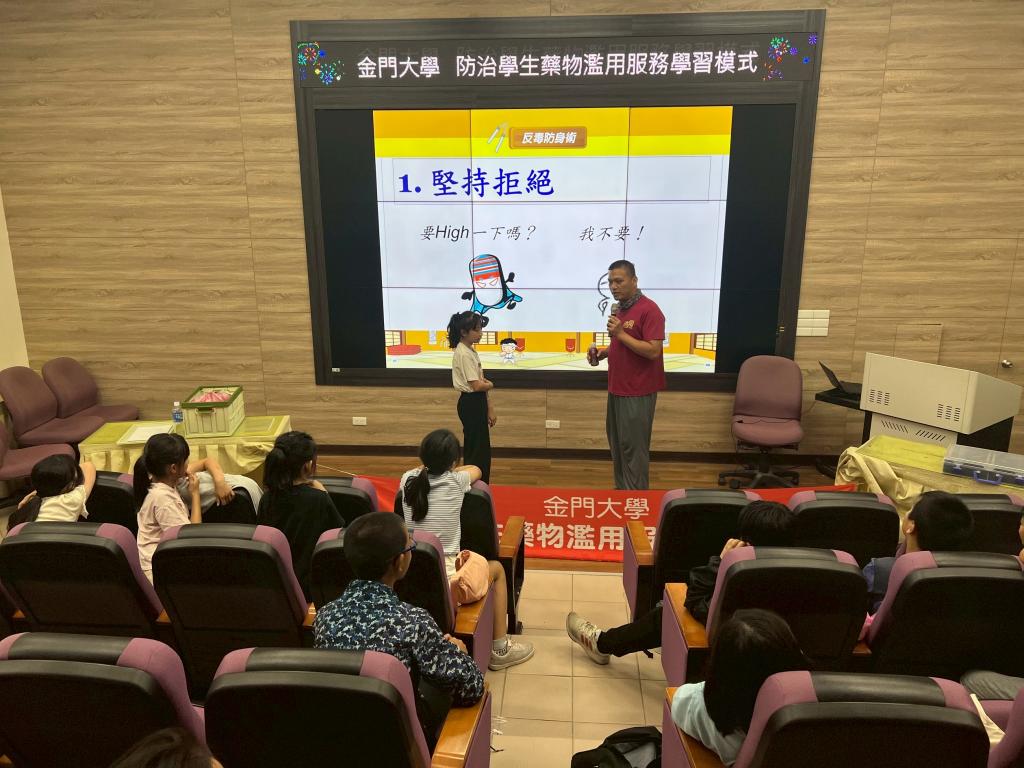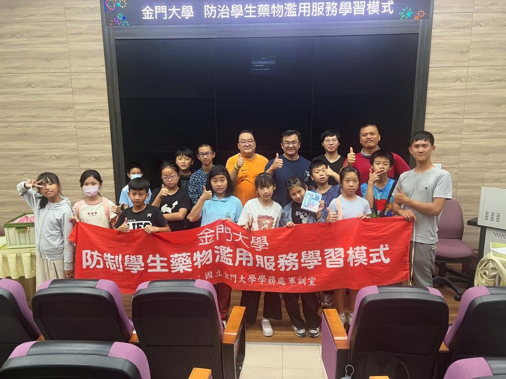 【勁報記者于郁金/金門報導】國立金門大學為配合教育部「大專校院防制學生藥物濫用服務學習模式方案」,日前由軍訓室主任許悠洋率學生志工團隊深入金門地區人口集中、學生人數較多的中正國小,以「大帶小」方式舉辦反毒宣導活動,受到中正國小師生歡迎;該項活動不僅將反毒教育向下扎根,提供優質學習環境與健康生活知識,同時亦履行大學社會責任。