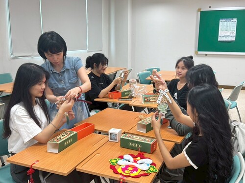 活動融合語言學習與節慶體驗,由華語教師魏伶因帶領學生認識端午習俗、學習相關中文詞彙,並動手製作節慶小物,寓教於樂。學校也準備應景的粽子,讓學生在學習過程中品嚐台灣在地風味,進一步理解文化中的象徵意涵。透過華語學伴的協助,外籍學生能更流暢地參與活動、增進語言能力與文化理解。
