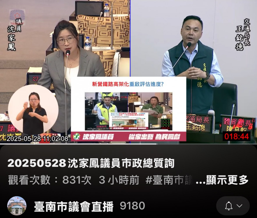針對地方交通建設,沈家鳳議員強調新營鐵路高架化案應重啟評估,並建議交通局與都發局合作,研究如何透過土地開發提高價值,以利財務規劃達標。此外,她關注柳營雙營橋通往仁愛路拓寬工程,目前因路幅狹窄無法會車,導致安全堪憂,雖預計116年才提報,呼籲工務局提前規劃、編列預算進行用地取得。