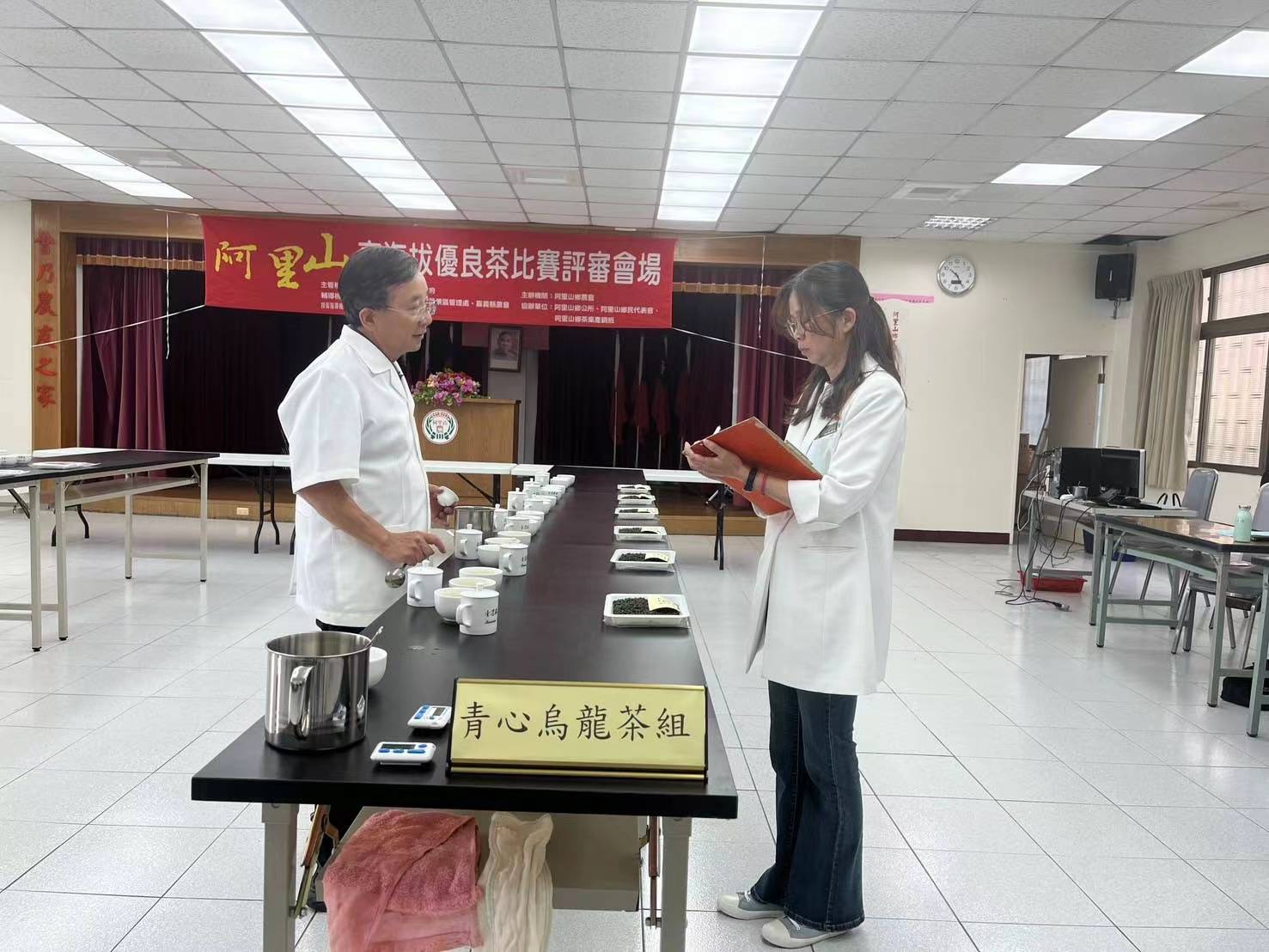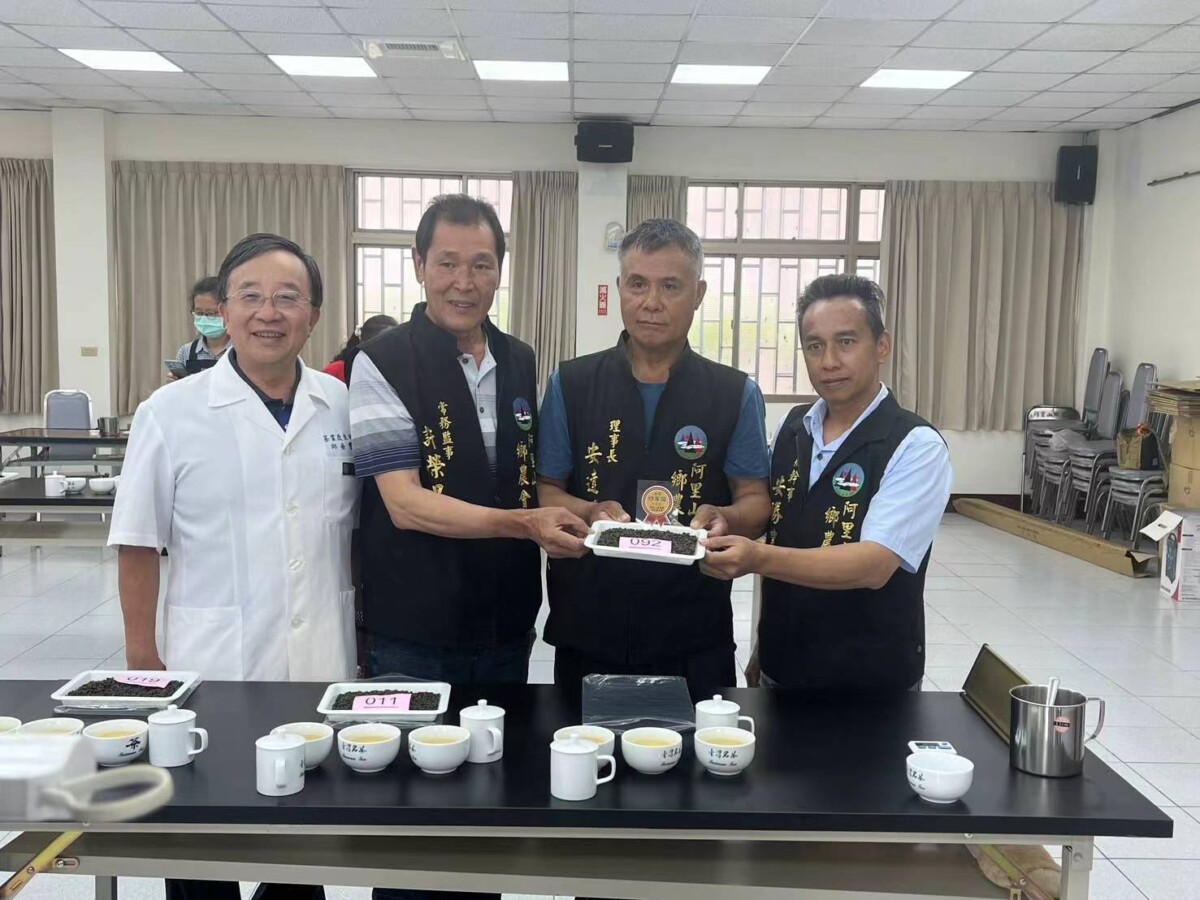 圖:阿里山鄉農會辦理2025阿里山春季高海拔優良茶競賽,今年繳茶點數青心烏龍組434點、金萱茶組132點,共566點參賽。烏龍組及金萱組特等獎均由王俊傑獲得。(記者吳瑞興翻攝)