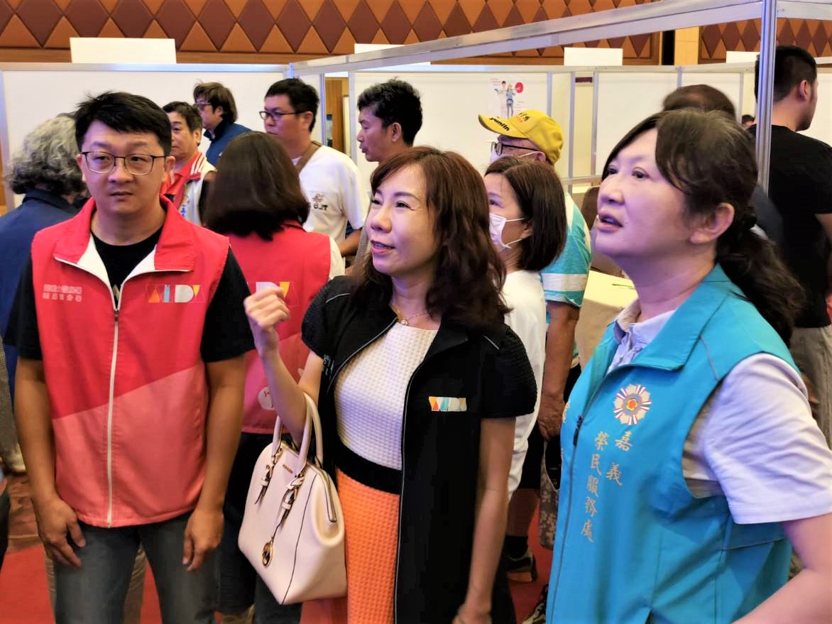 嘉義榮民服務處許淑菁處長除了特別向現場徵才廠商及機關單位強力推薦退除役官兵的特質外,也帶著就業站同仁至各企業廠商攤位交流互動,尋求個別拜會機會。