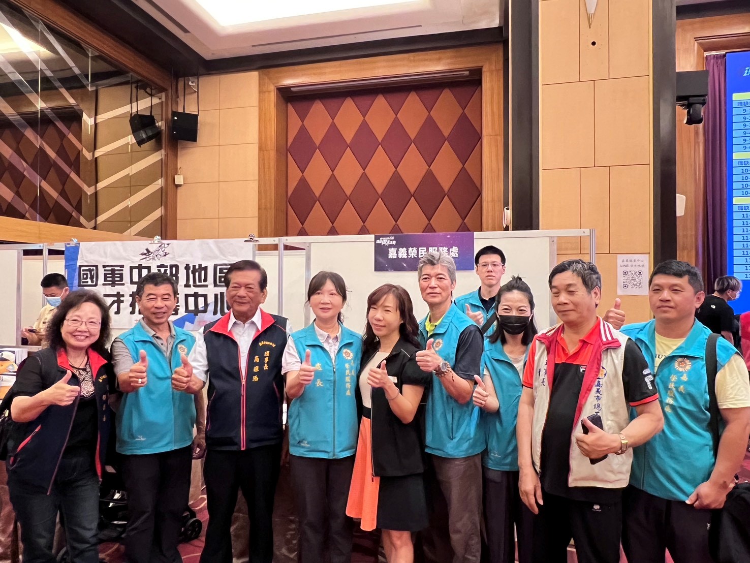 本次勞動部勞動力發展署雲嘉南分署嘉義就業中心在嘉義市耐斯王子大飯店舉辦大型現場徵才活動,為響應ESG永續發展及數位轉型,活動全面推動無紙化作業,現場民眾都先至活動官網填寫線上履歷表應徵職缺,縮短面試流程,榮服處就業站同仁也在現場協助求職退除役官兵眷。