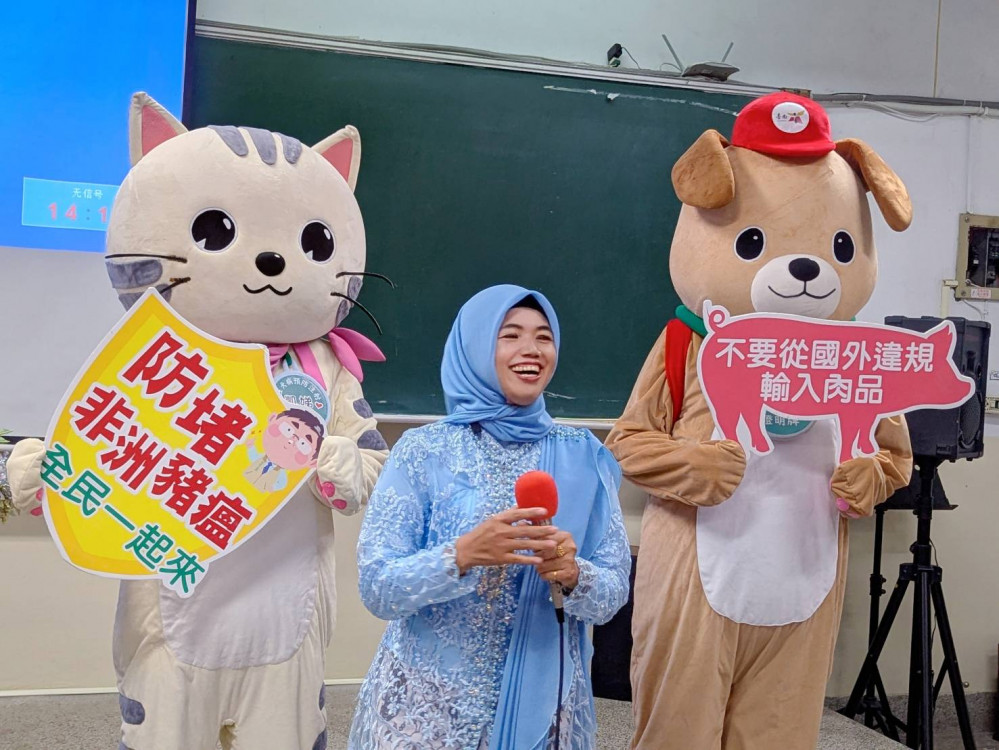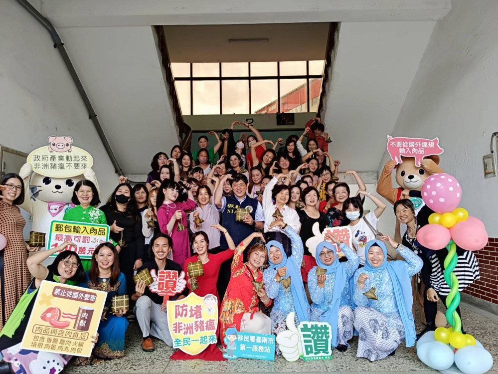 由於過去曾有新住民自國外攜帶肉品來臺遭罰案例,本次活動也邀請臺南市動物防疫保護處出動宣傳大使「豆哥」及「凱娣」到場與新住民同歡,幫助新住民瞭解防範非洲豬瘟重要性。動保處表示,為嚴防非洲豬瘟,檢疫犬除定期在機場執行守護邊境任務,另外也會至各地郵局機動出勤,嗅聞郵包,呼籲新住民朋友千萬不要讓親友從國外寄回含豬肉產品,否則將處以重罰,第一次查獲,將處以新臺幣20萬罰鍰,第二次則重罰100萬元!。