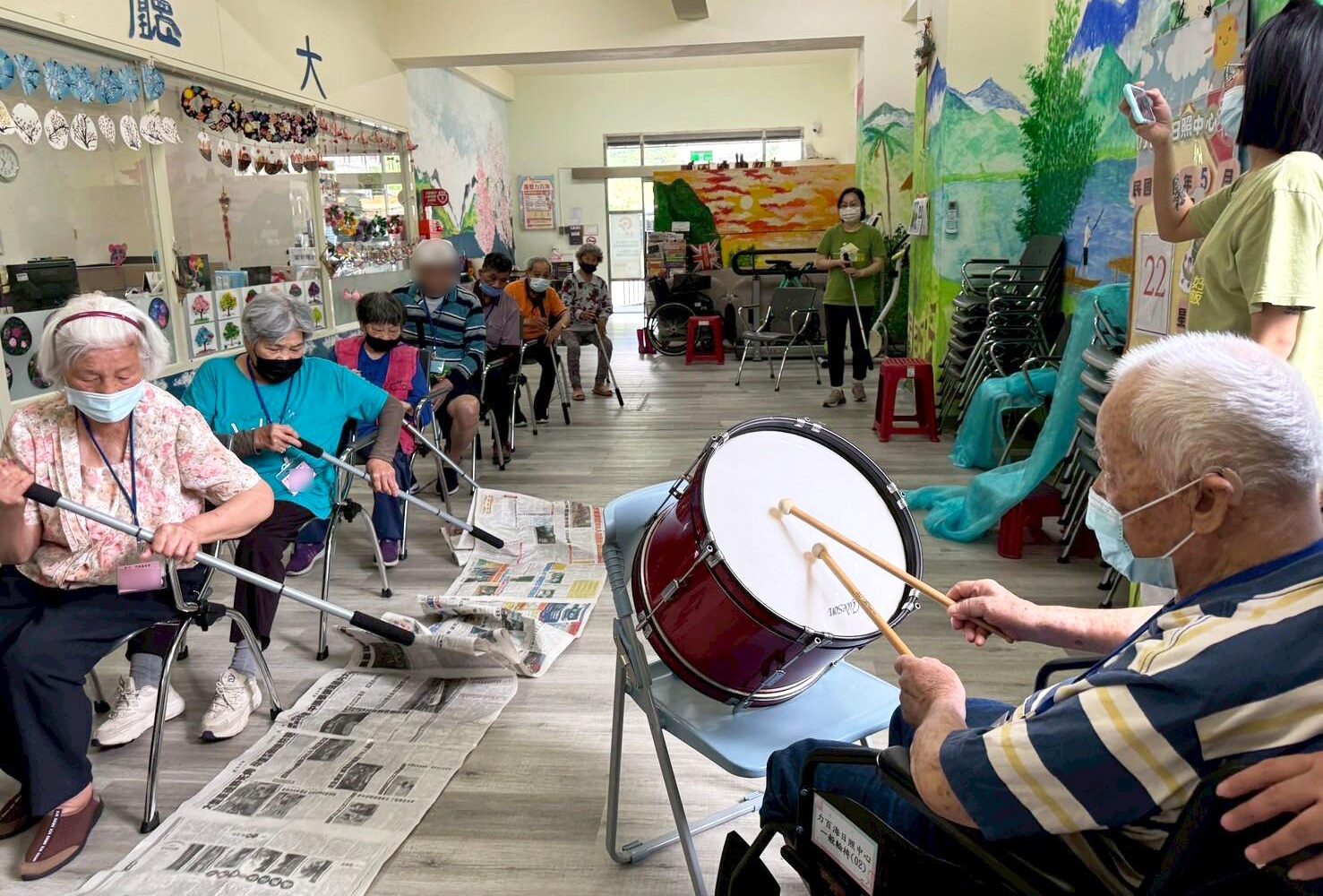 壽豐力百海日照中心更是連日安排龍舟手作與立體拼貼活動,長者們憶起往年在鯉魚潭觀看划龍舟的場景,熱血沸騰,即便坐在教室內,也隨著96歲蔡爺爺打出的鼓點,在報紙水道上用自製槳板趣味競划,樂在其中。