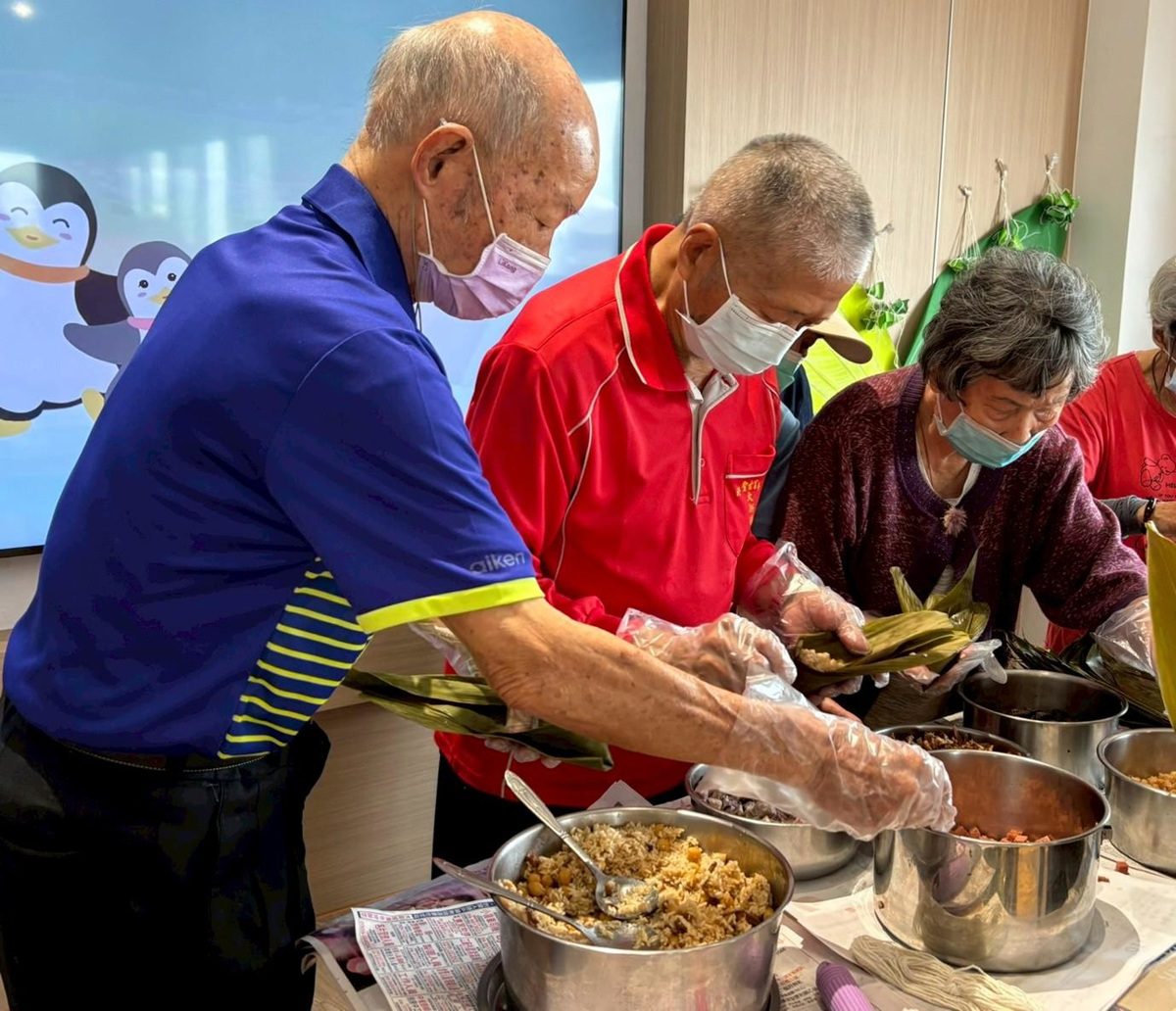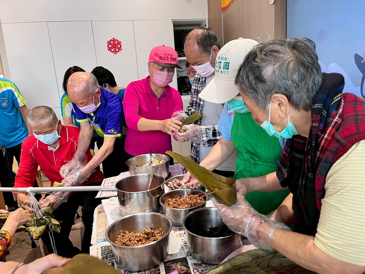 長輩們聚精會神地學習,分工合作、互相協助,不僅訓練手部靈活度與專注力,更促進彼此間的交流與互動。大家邊包邊聊,有人分享自己年輕時如何與家人一同包粽、煮粽,還有人感慨:「現在能再次包粽子,真的很感動!」現場不僅能品嚐大家努力的成果,也傳遞了節日最重要的精神-團圓與關懷。