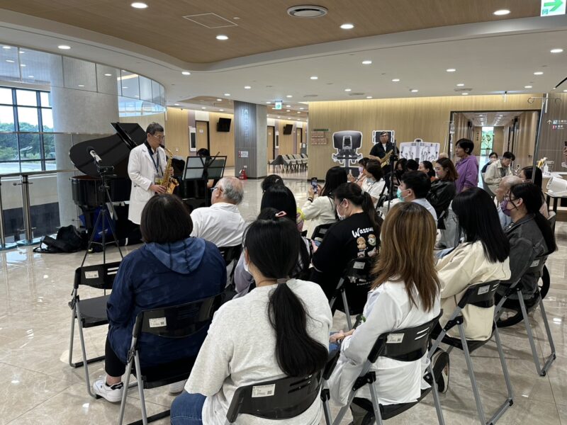 吳明和院長也致上十二萬分的感謝,在端午佳節前夕為院內的同仁和患者帶來這一場「薩克斯風與醫學結合」的吹奏,不僅促進了病患的生理與心理康復,也幫助醫療人員保持身心平衡。這種跨領域融合越來越受到重視,他也表示,未來也會在院區、外多多舉辦這類型活動,透過音樂療癒自己與他人,讓身心充滿正能量。最後就在大家一起唱出「感恩的心」的歌聲中,讓高雄秀傳的醫療空間多了一份溫暖與感動的氣息。