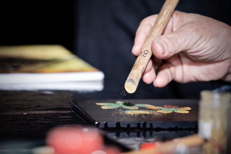 漆工藝由臺灣最具代表性的漆藝世家王清霜家族三代領銜,臺灣首位人間國寶王清霜巨擘將帶來4幅作品參展,包含其名作〈佇聆孔雀〉,第二代王賢民、王賢志各是漆工藝「戧金」、「平蒔繪」的地方保存者,第三代王峻偉也有漆畫展出,盡現圓融、安定、富足又大器的王氏家風,讓人驚豔漆藝獨有的華美溫潤、曖曖內含光。